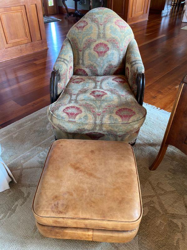 Lot #441 Upholstered Fox Chair with Leather Ottoman