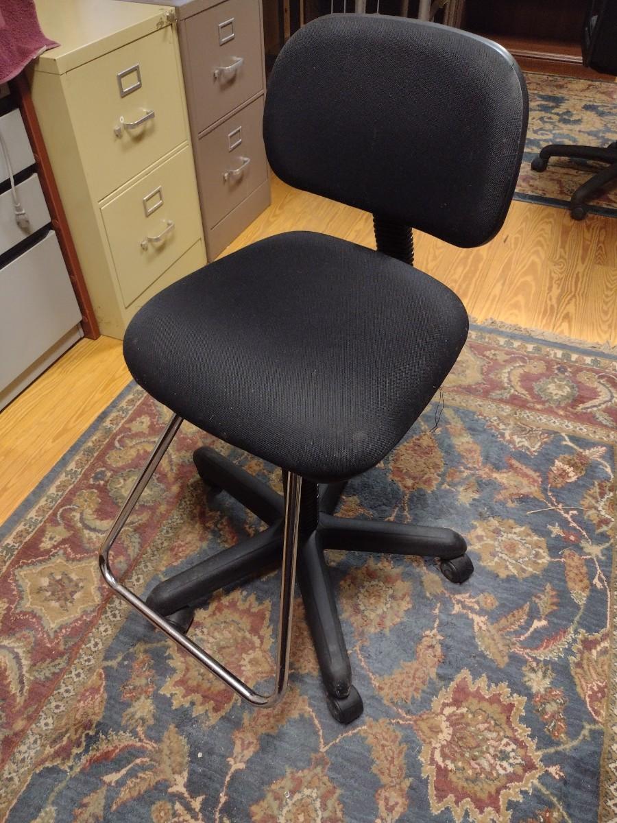 Upholstered Office Chair on Casters PLEASE NOTE:. Due to no internet connection or wireless service, all invoices must be prepaid via PayPal, Stripe, or Zelle prior to arrival at pick up. Exact change cash onsite is acceptable but absolutely no debit or credit cards at time of pick up.
