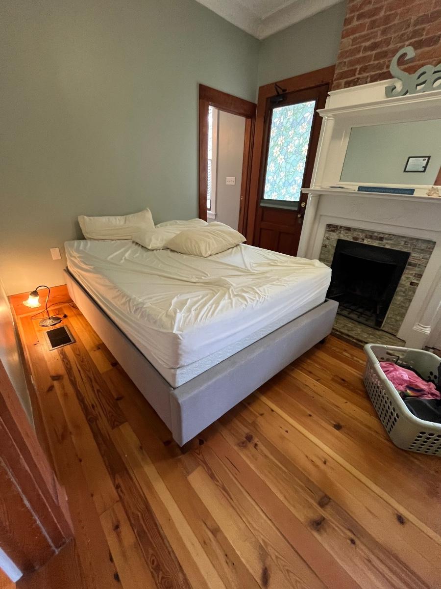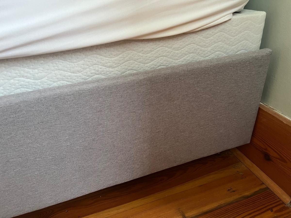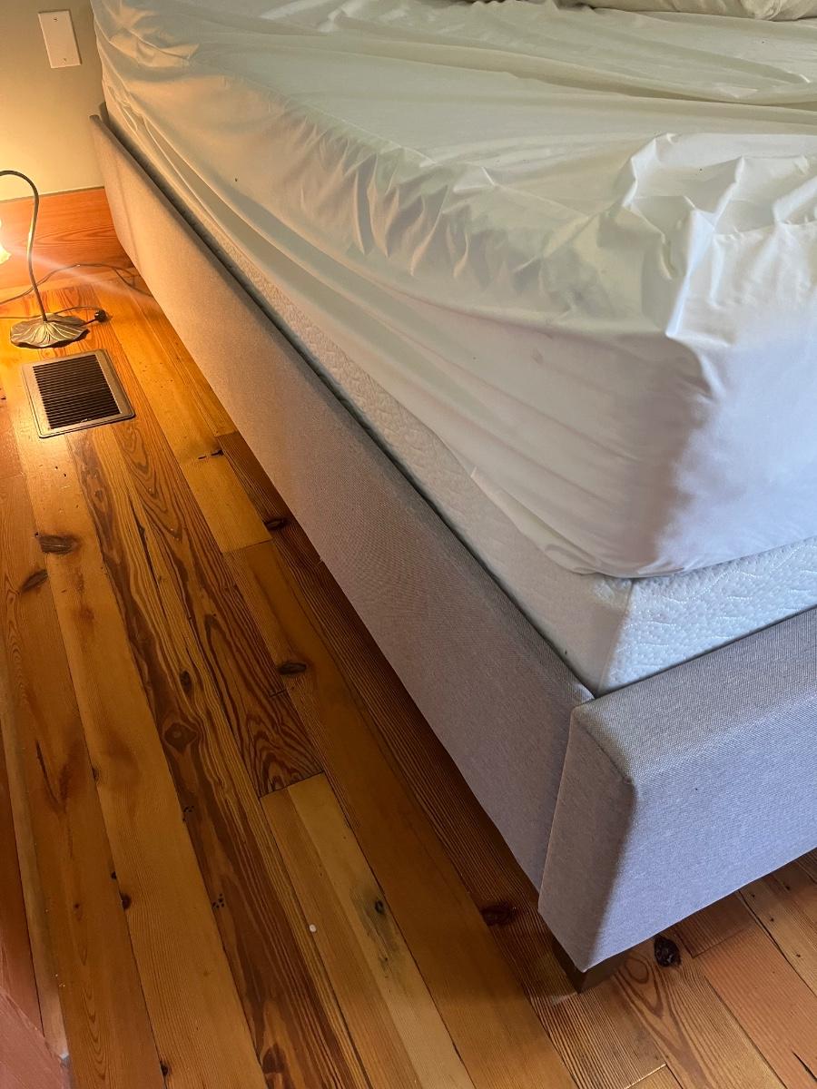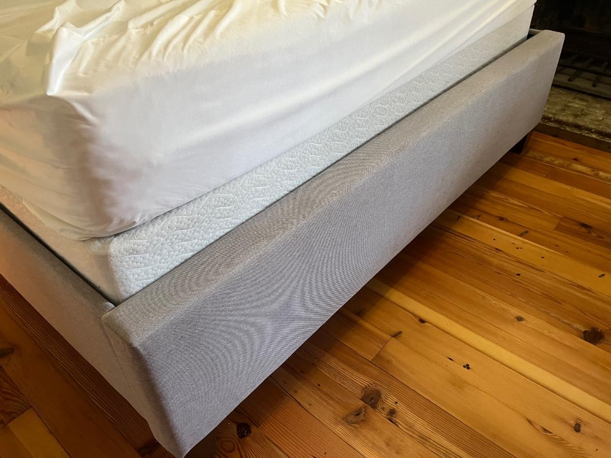 Upholstered queen bed frame with Seally mattress; approx. 82" x 62" x 16" H; available as frame only