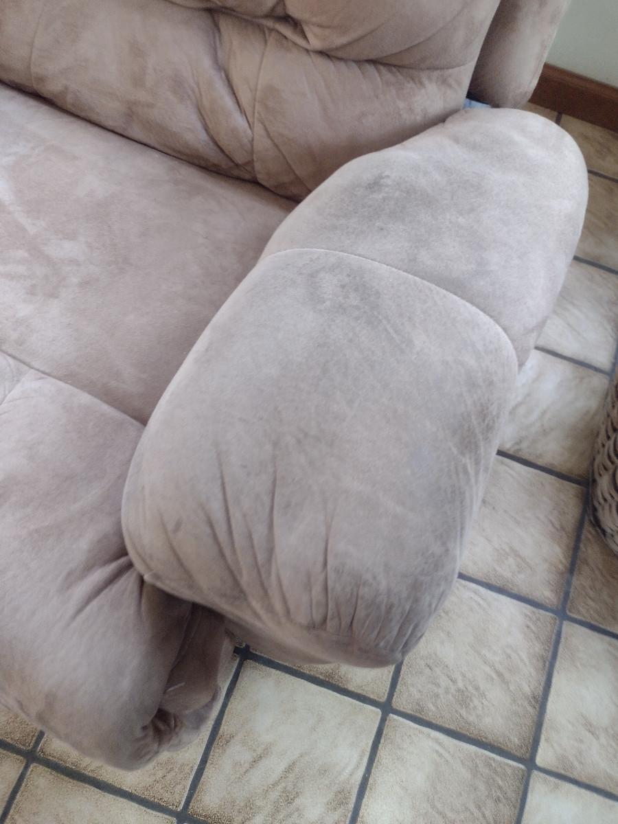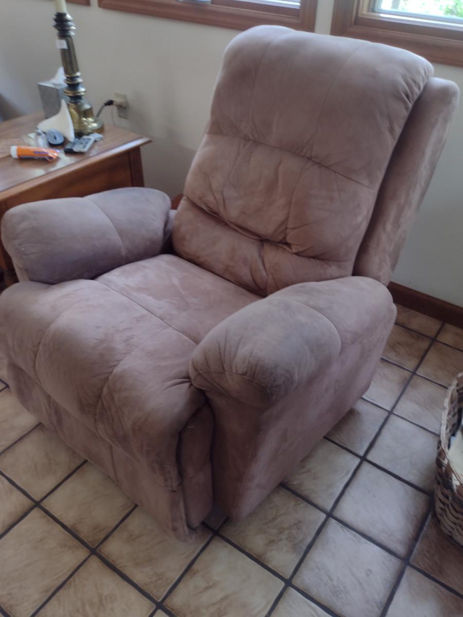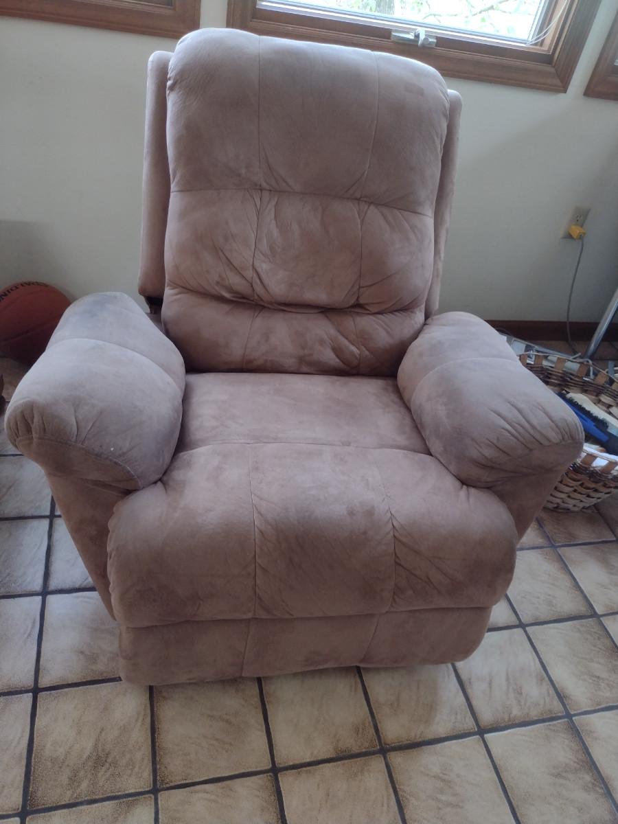Upholstered Reclining Chair (Choice A). Item has some staining and may need to be cleaned.