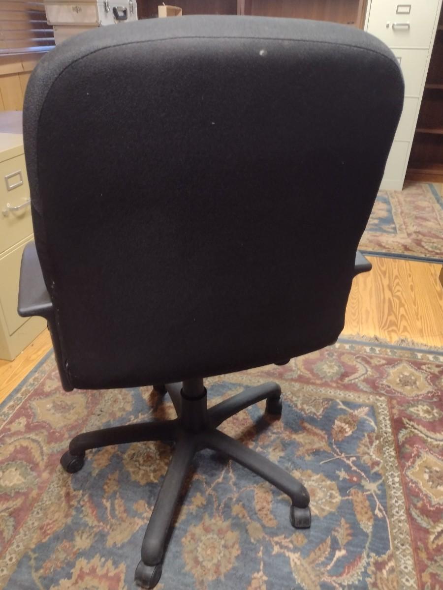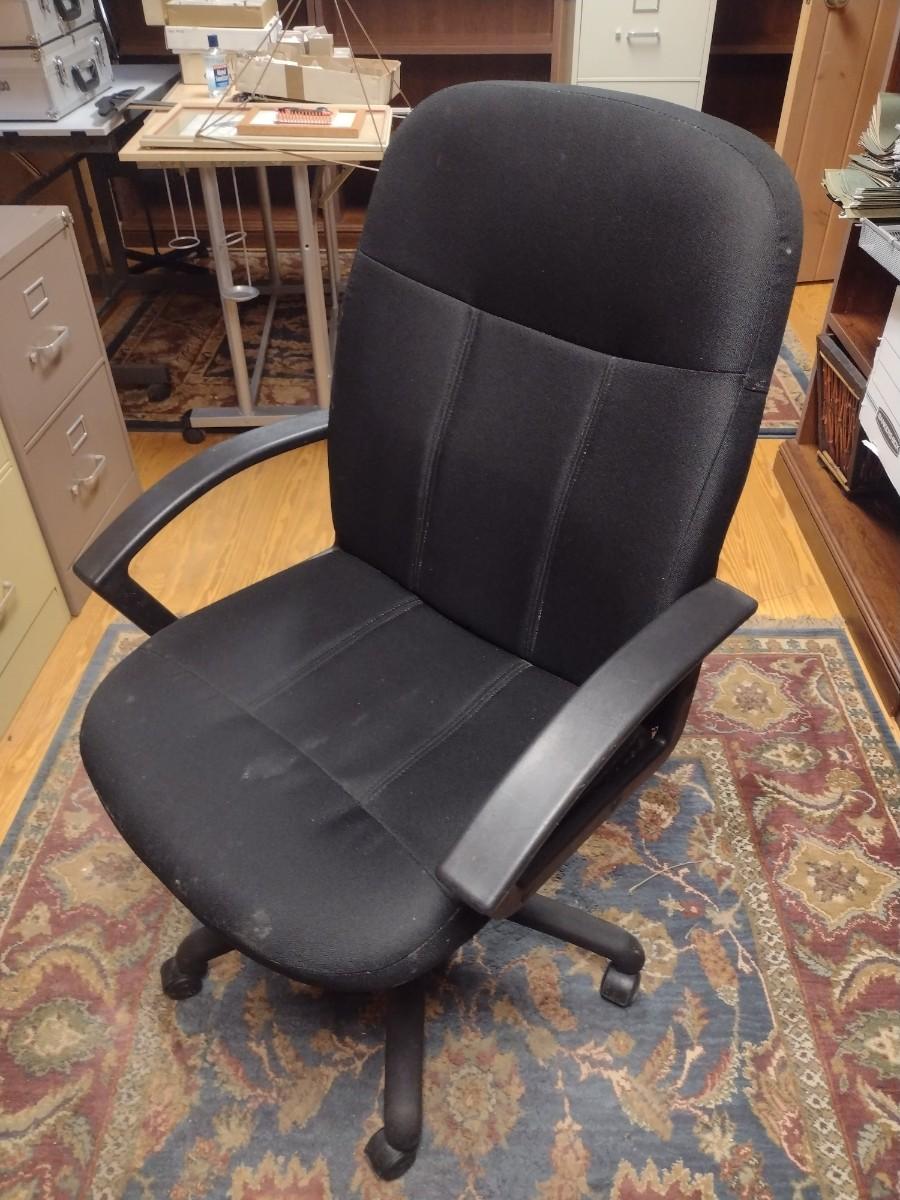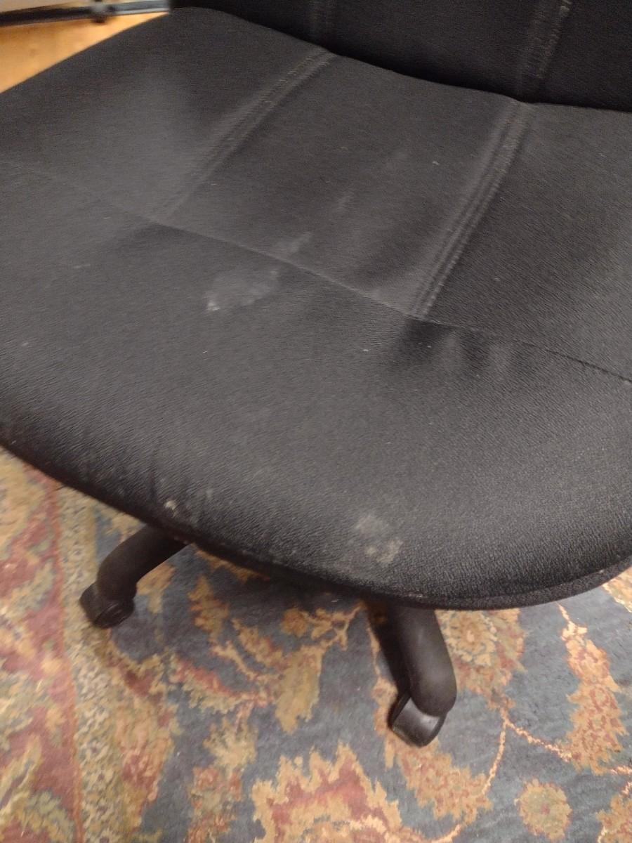 Upholstered Rolling Office Chair. Has some staining - please see pictures. PLEASE NOTE:. Due to no internet connection or wireless service, all invoices must be prepaid via PayPal, Stripe, or Zelle prior to arrival at pick up. Exact change cash onsite is acceptable but absolutely no debit or credit cards at time of pick up.