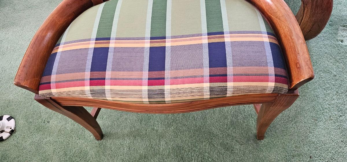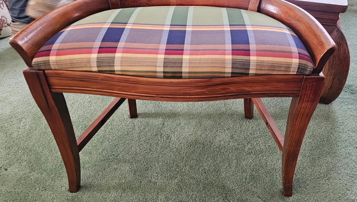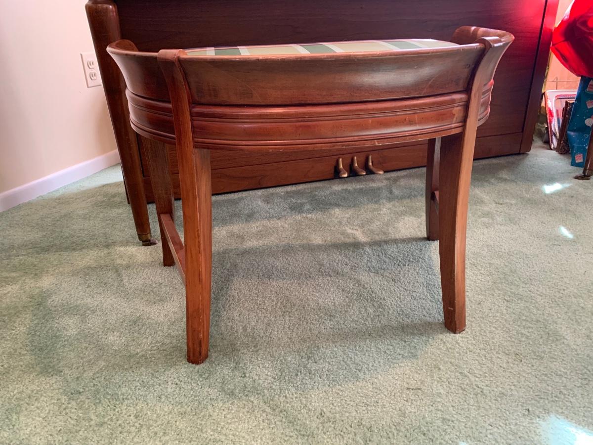 This upholstered chair can be used as a piano bench or for occasional seating. Excellent, clean condition