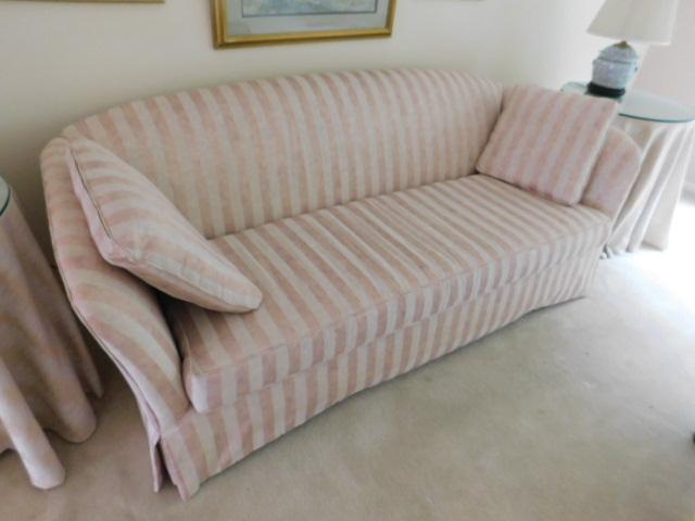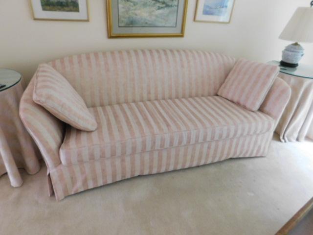 Upholstered Single Cushion Couch 81" in good condition. Loft area. Set of stairs to manuever