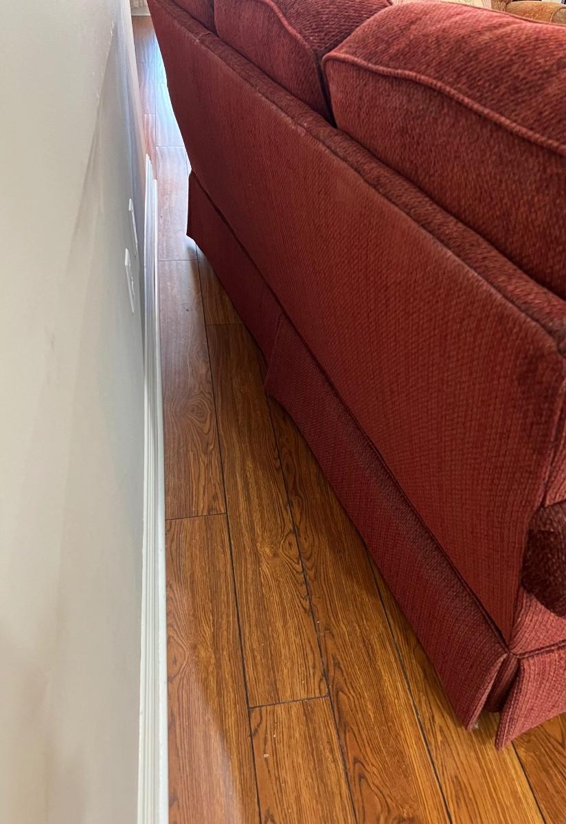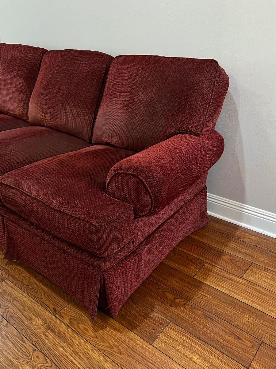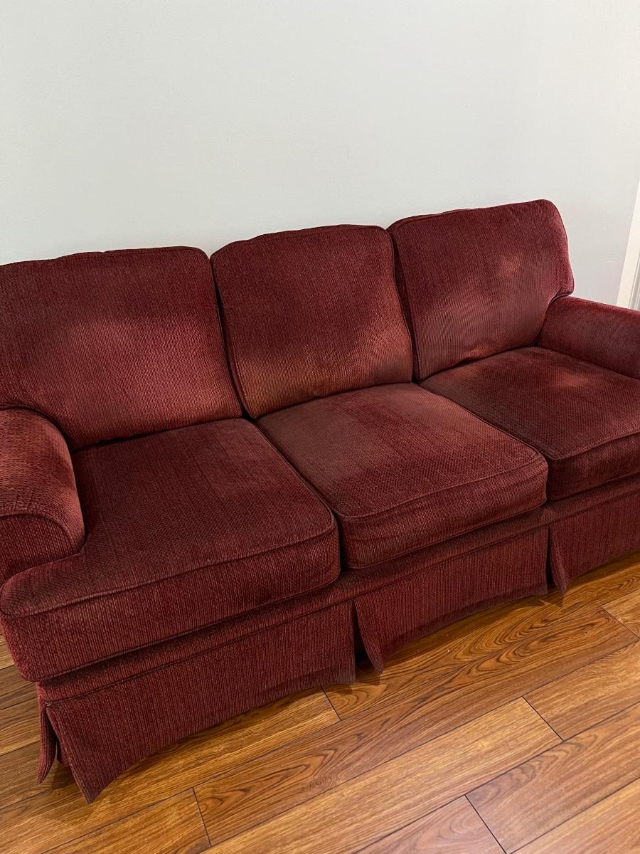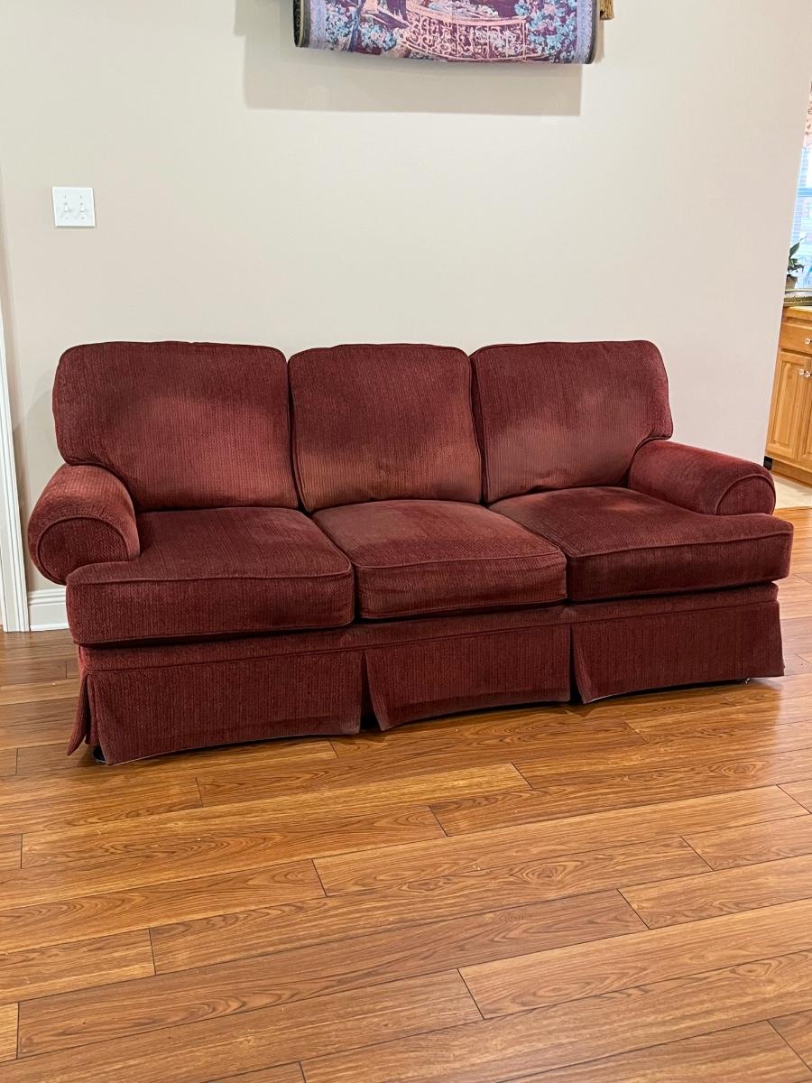 No brand found ~ Couch has ware due to age, see photos for condition ~ Has been deodorized, sanitized, & disinfected ~ 38” H x 87” W x 40” D