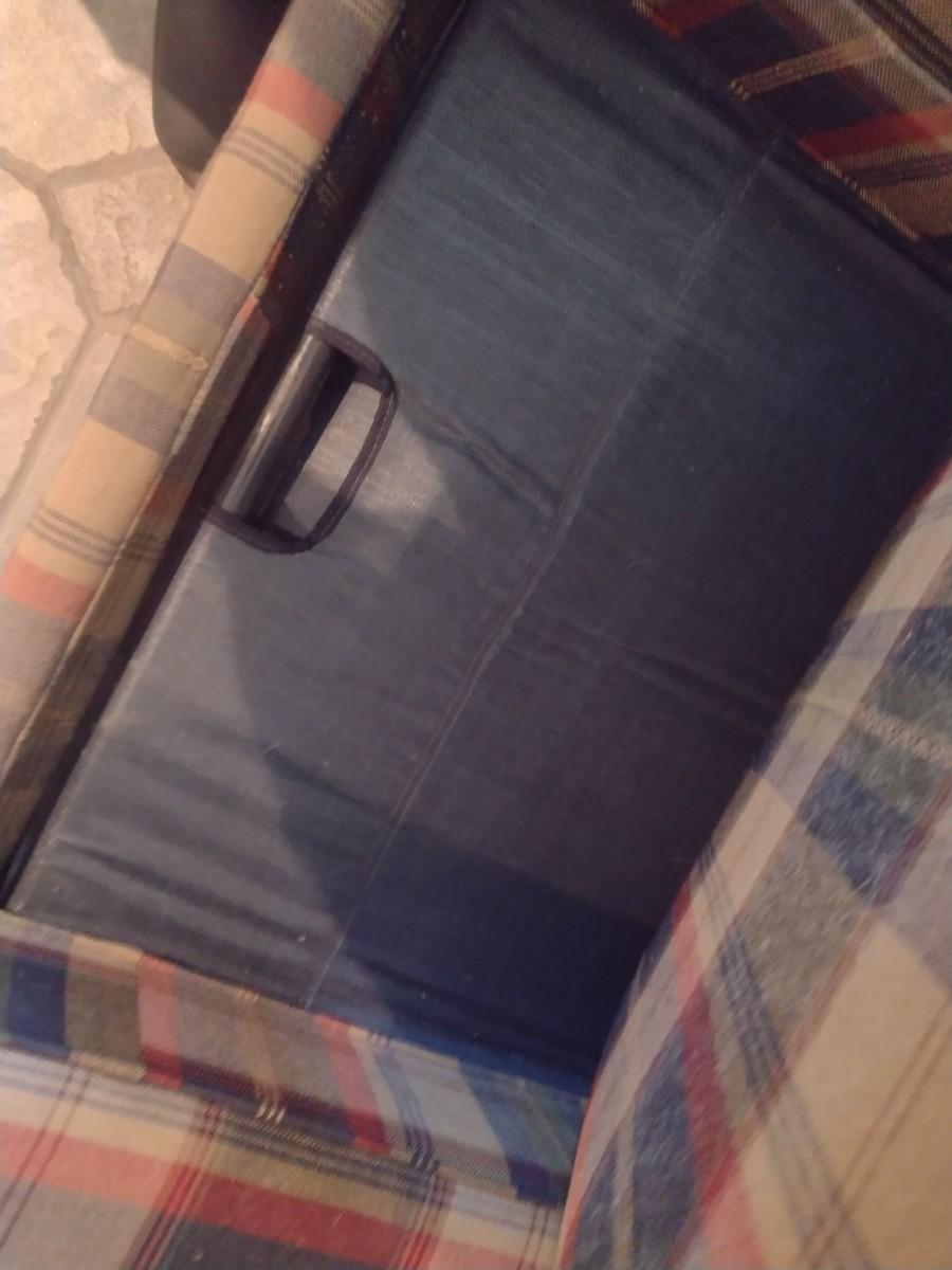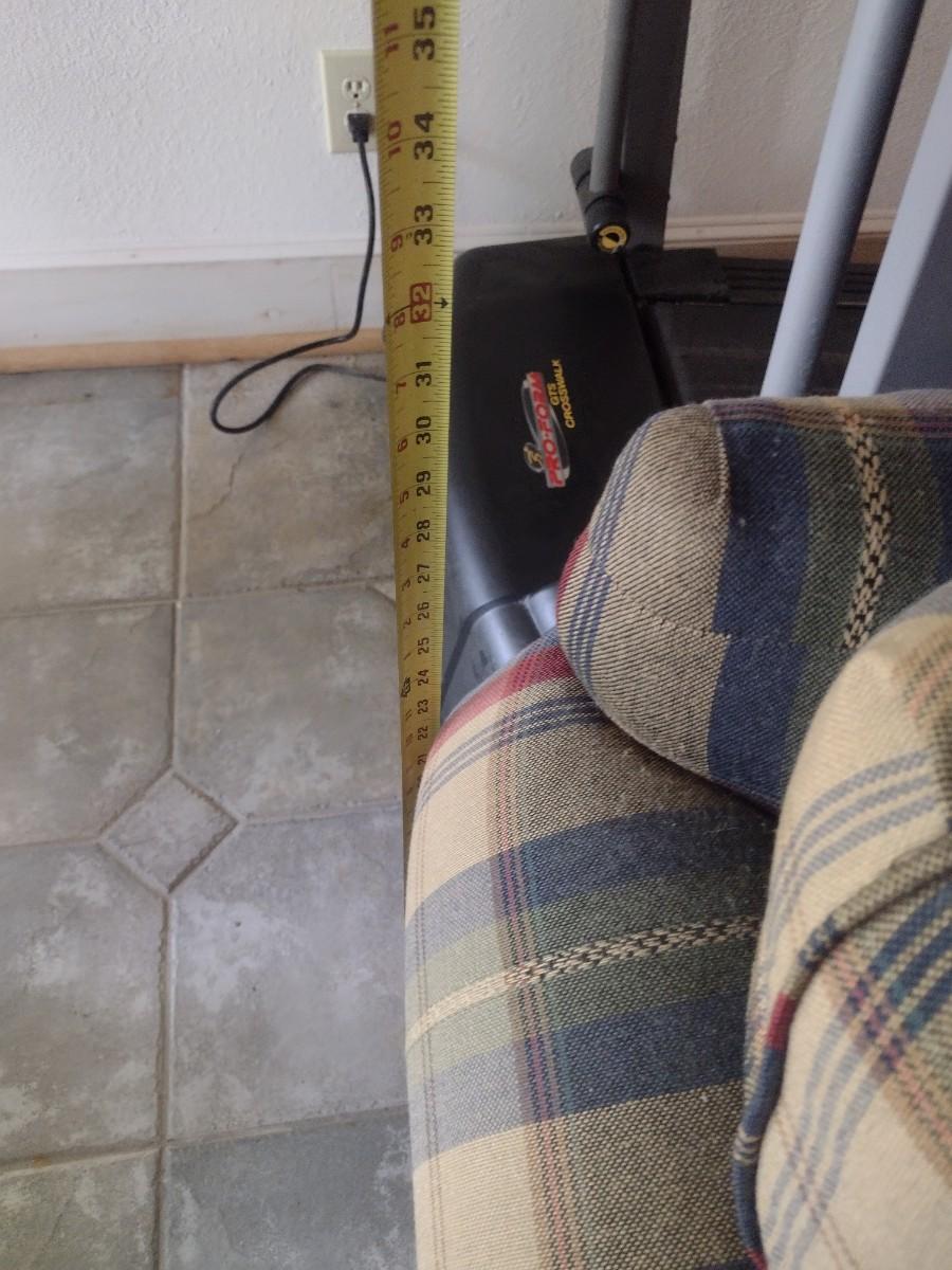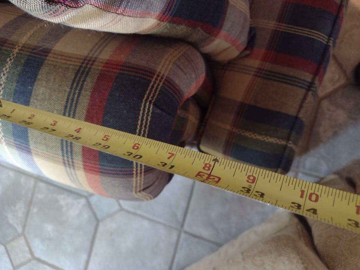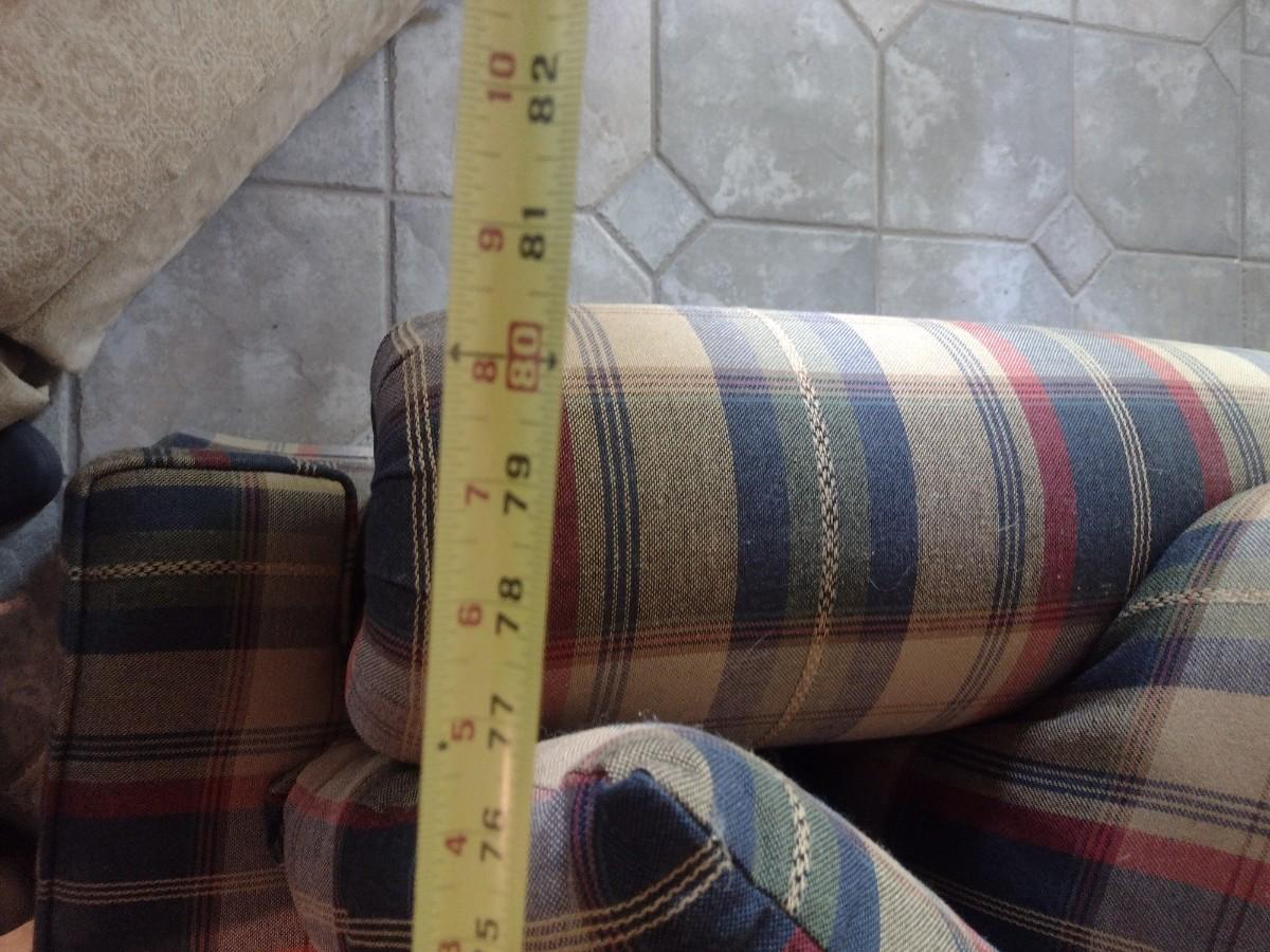 Upholstered Three Cushion Sofa/Sleeper. Lower-level item. Bring assistance to carry up the stairs to the main floor