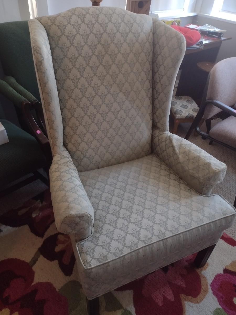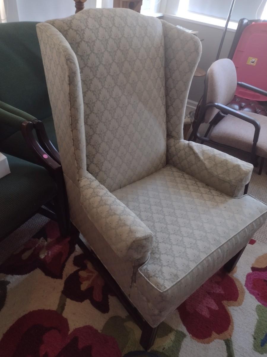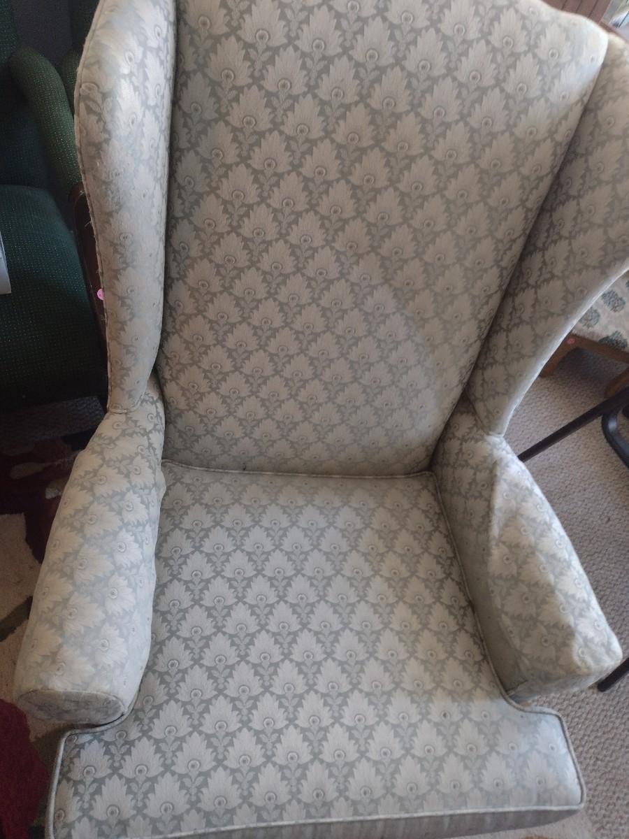 Upholstered Wing Back Chair with Matching Ottoman (See all Pictures)