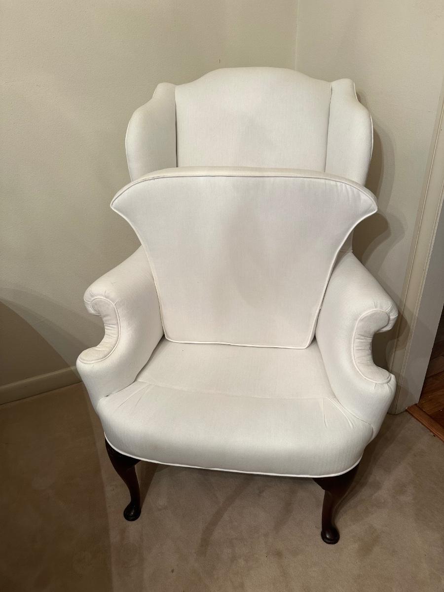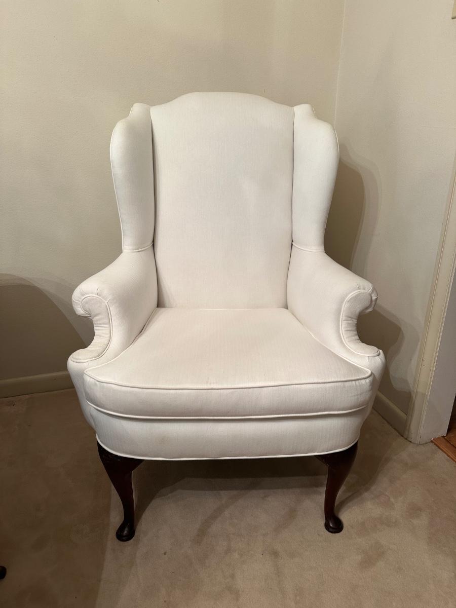 Upholstered Wingback Armchair with Queen Anne-Style Legs