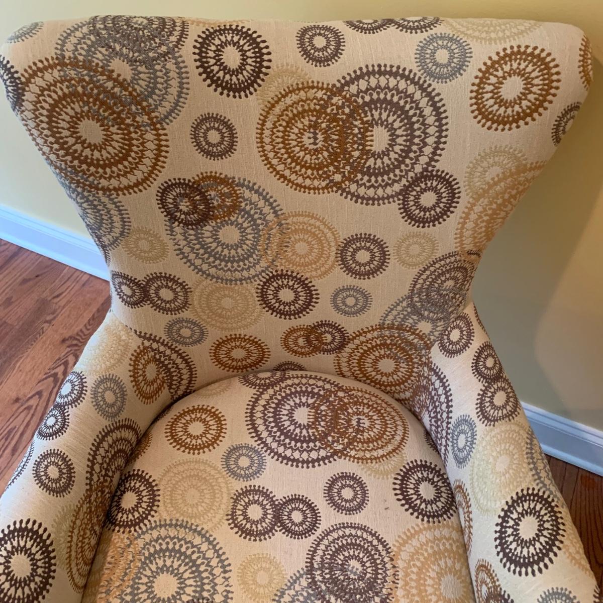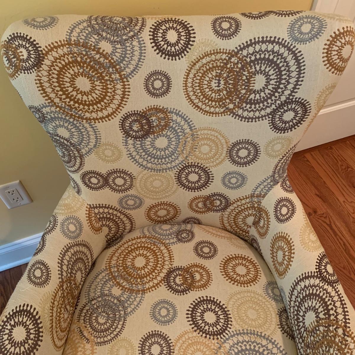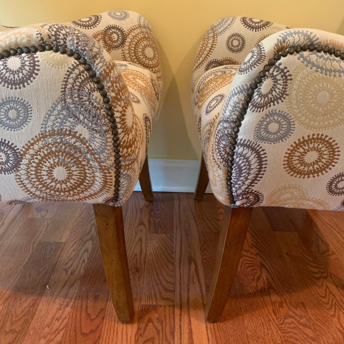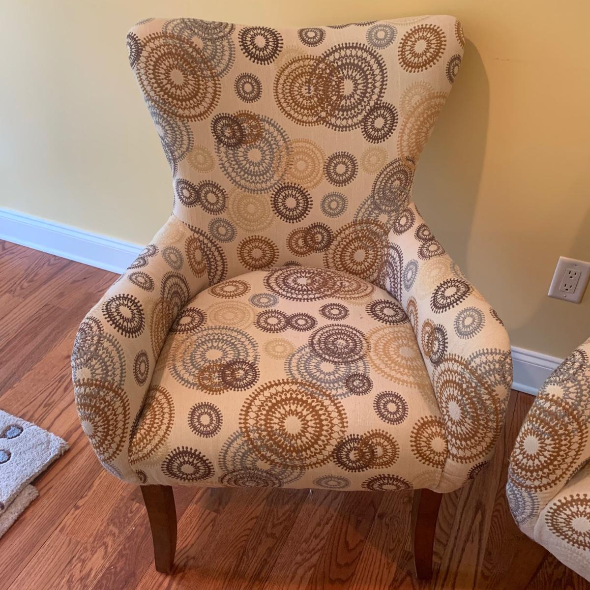 Two upholstered wingback chairs with tapered wooden legs, by Coaster Fine Furniture. Chairs measure, 27” x 25” x 37” with a seat height of 21”. Please note that a leg on one of the chairs will need to be tightened. Local pickup only.
