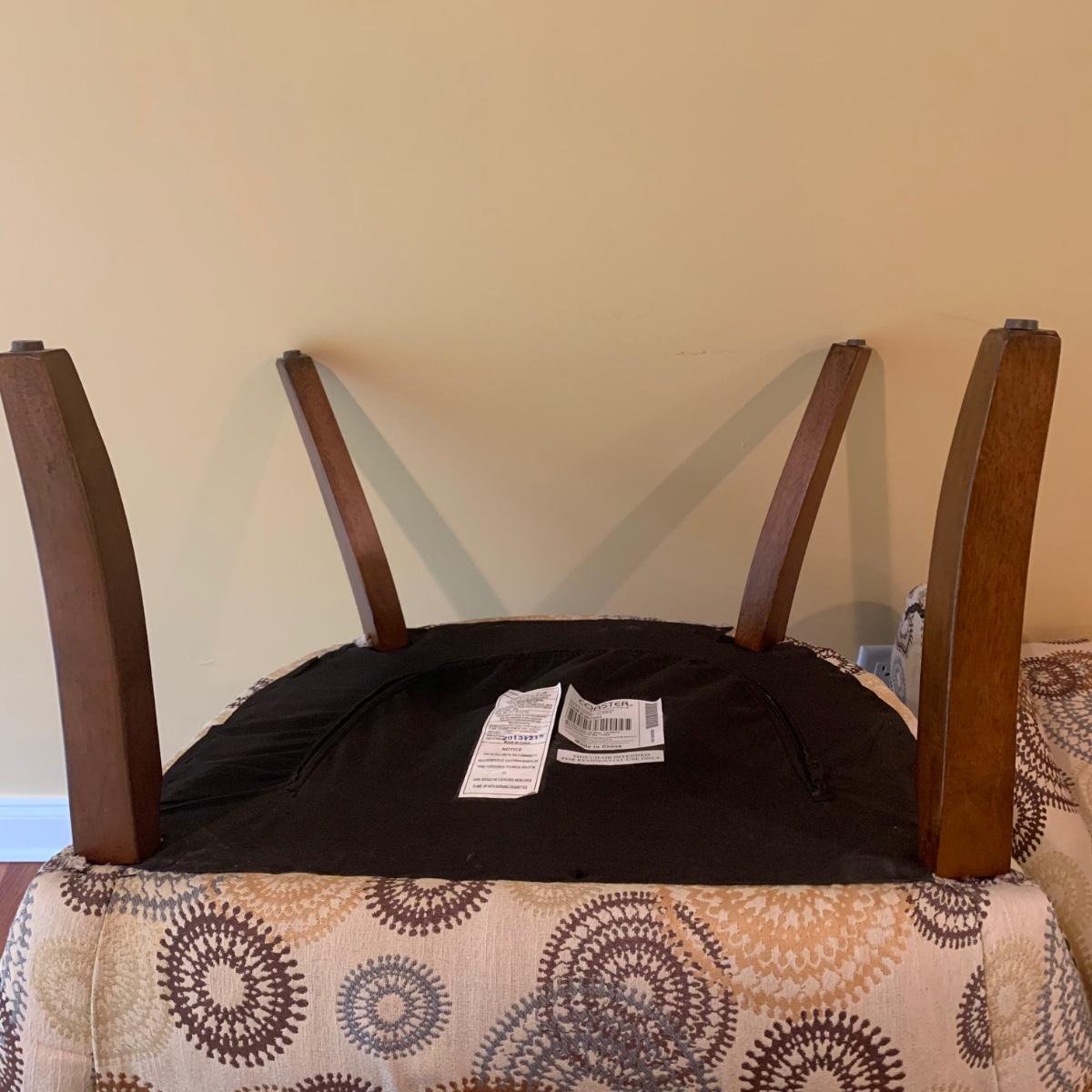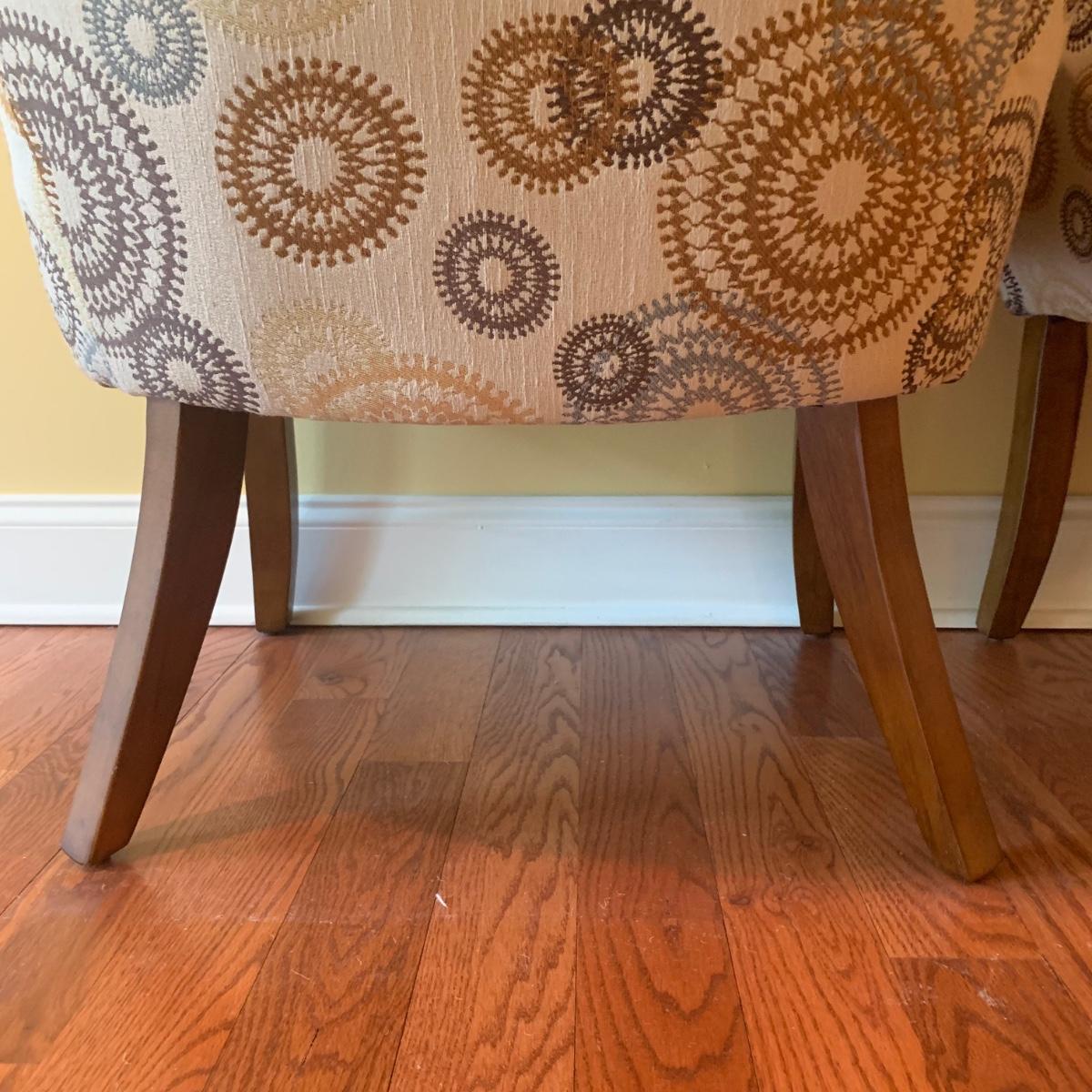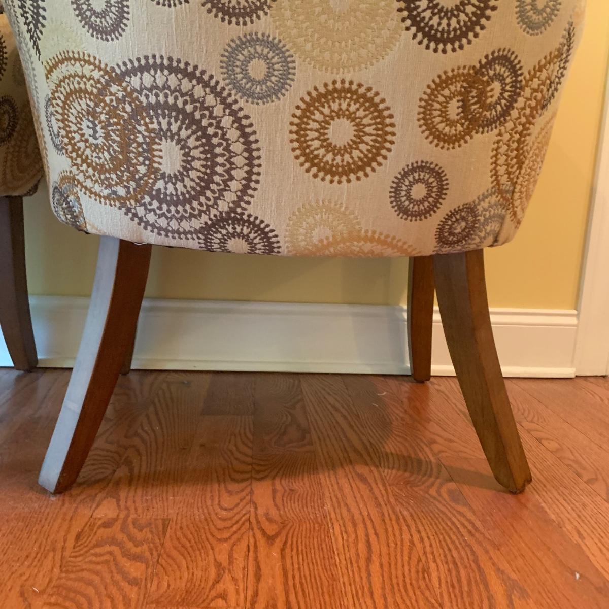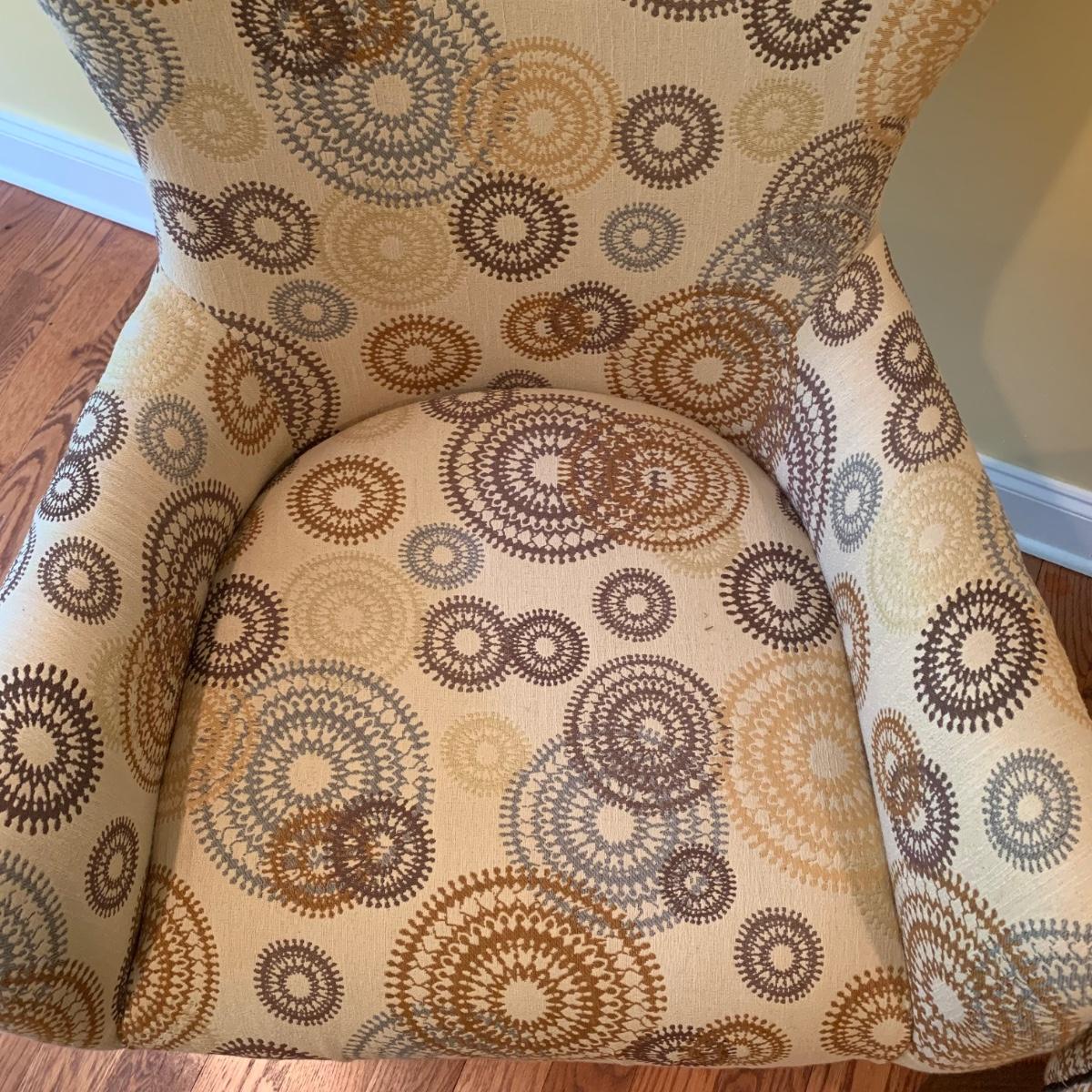 Two upholstered wingback chairs with tapered wooden legs, by Coaster Fine Furniture. Chairs measure, 27” x 25” x 37” with a seat height of 21”. Please note that a leg on one of the chairs will need to be tightened. Local pickup only.