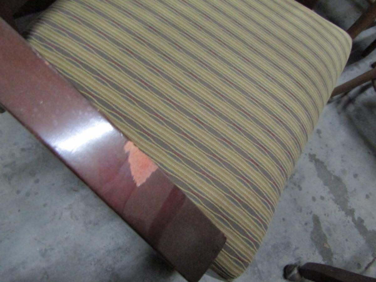 Upholstered Wood Frame Chairs on Casters- Set of 2 (#127-D). Please see all pictures- some damage to arm of one chair.