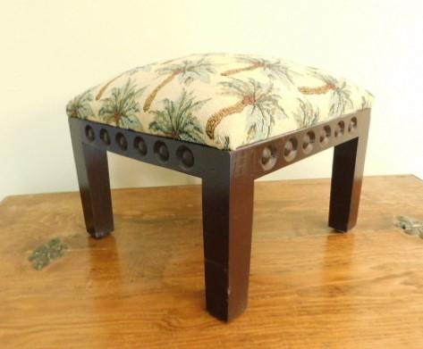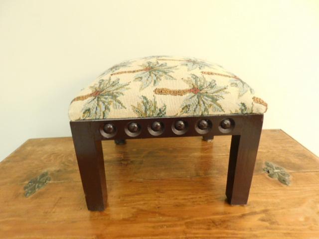 Upholstered Wood Framed Foot Stool with Palmetto Design 12"x10"