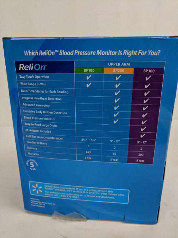 Upper Arm Blood Pressure Monitor, Jumbo Size Digits, BP300, Reli ON
