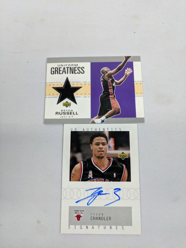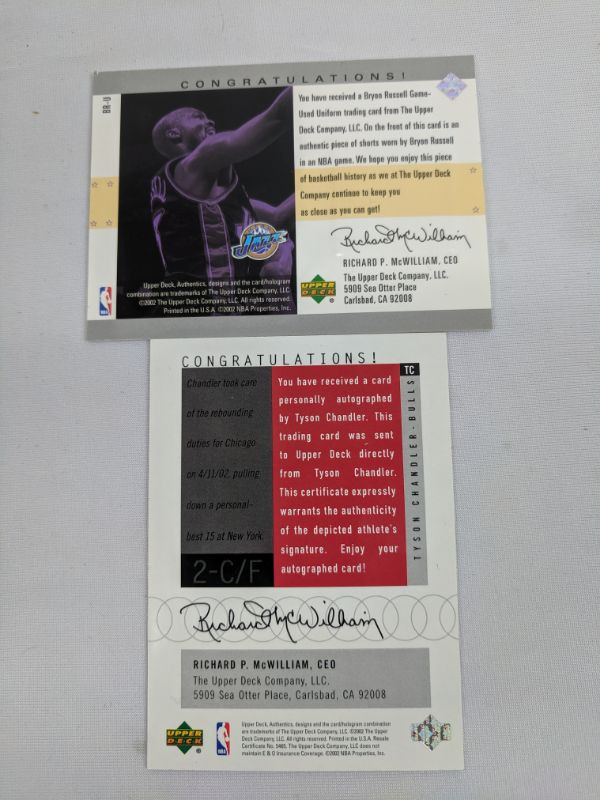 Upper Deck 2002 Bryon Russell (Memorabilia) & Tyson Chandler (Signed) Cards