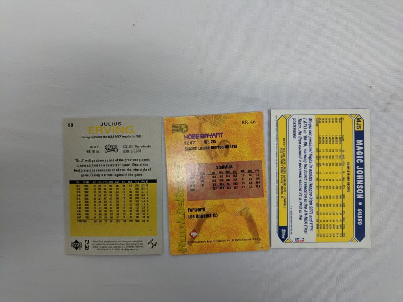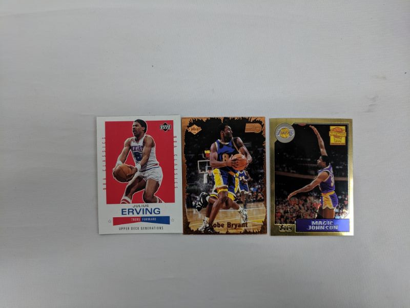 Upper Deck 2002 Julius Erving, Edge 1999 Bryant, Topps 2001 Magic Johnson Cards