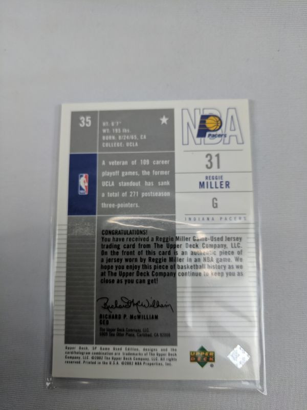 Upper Deck 2002 Reggie Miller Card With Memorabilia