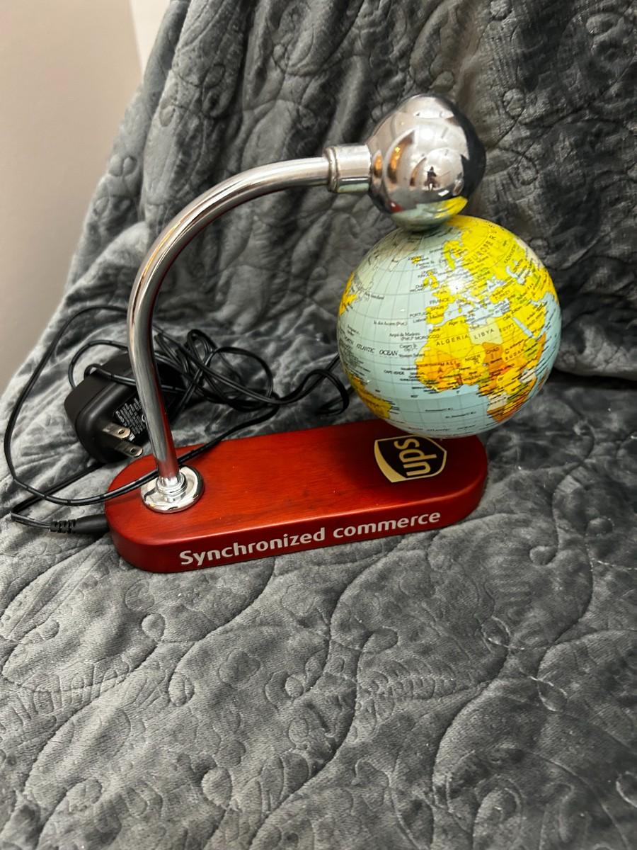When that brown truck pulls up, you know something good is coming to your front door! This lot features THREE unique UPS (United Parcel Service) collectibles -- one is a floating rotating globe (power cord included) (tested/works), the second is a brown truck new in package (removed only to take the photos for this listing) that is a bank and the last is a snow globe! Also included is this beautiful collectible globe! Don't miss out on this one!