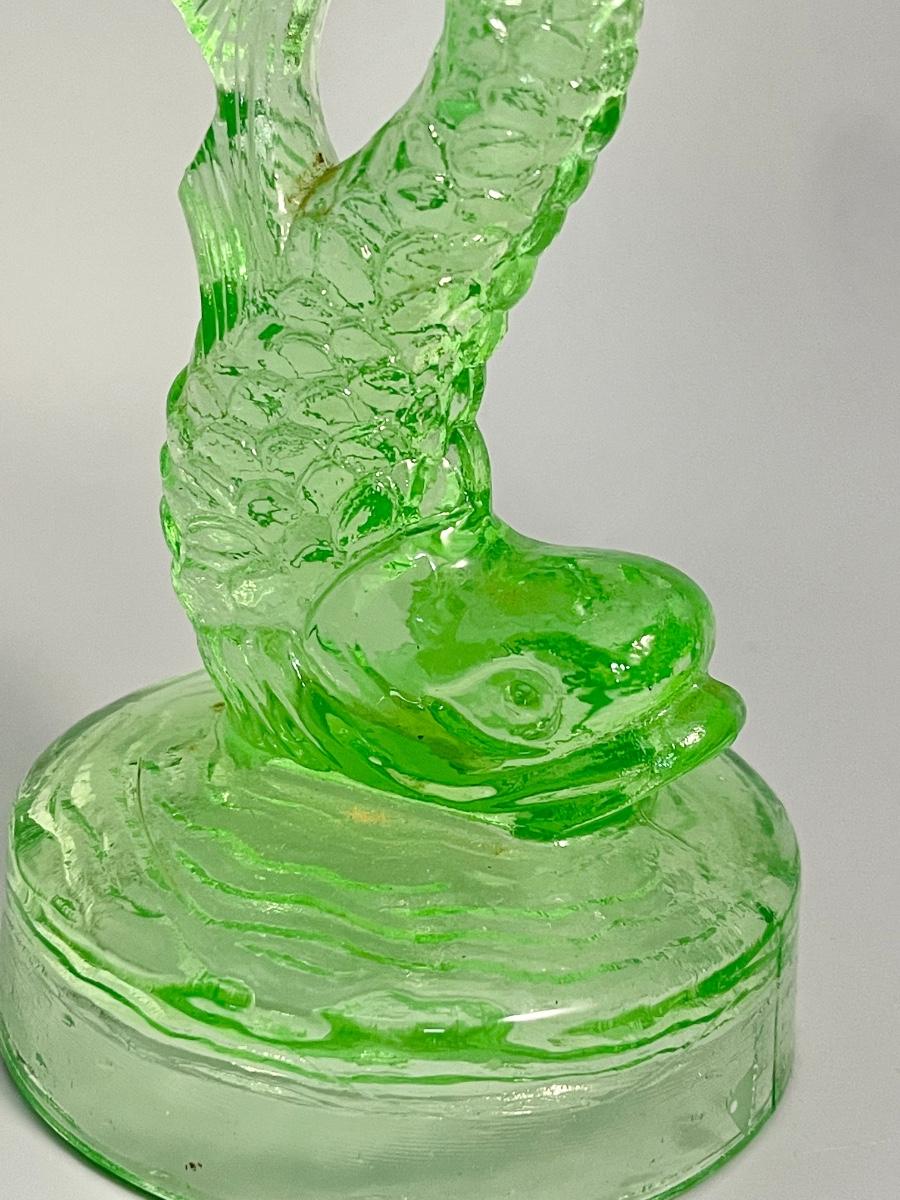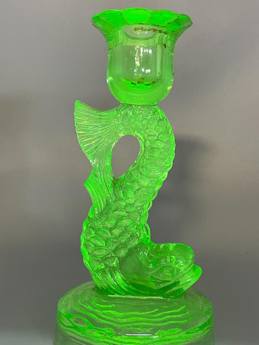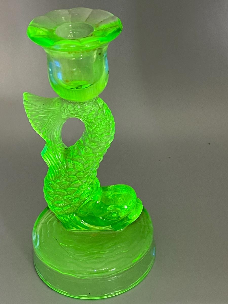 Lovely glow to this piece that is in excellent condition. Needs a gentle cleaning. A great addition to your vintage glass collection. The dolphin is sure a great piece to keep or gift to a fellow collector.