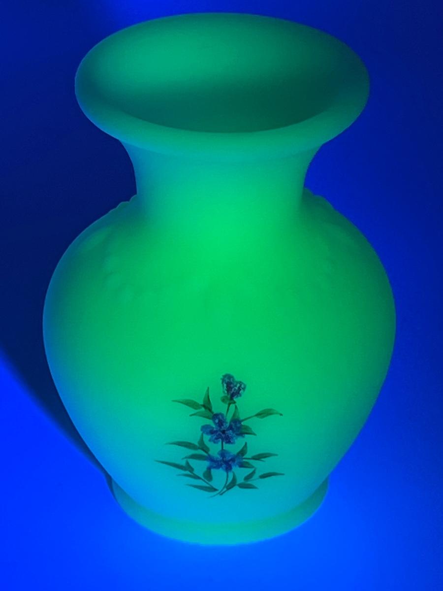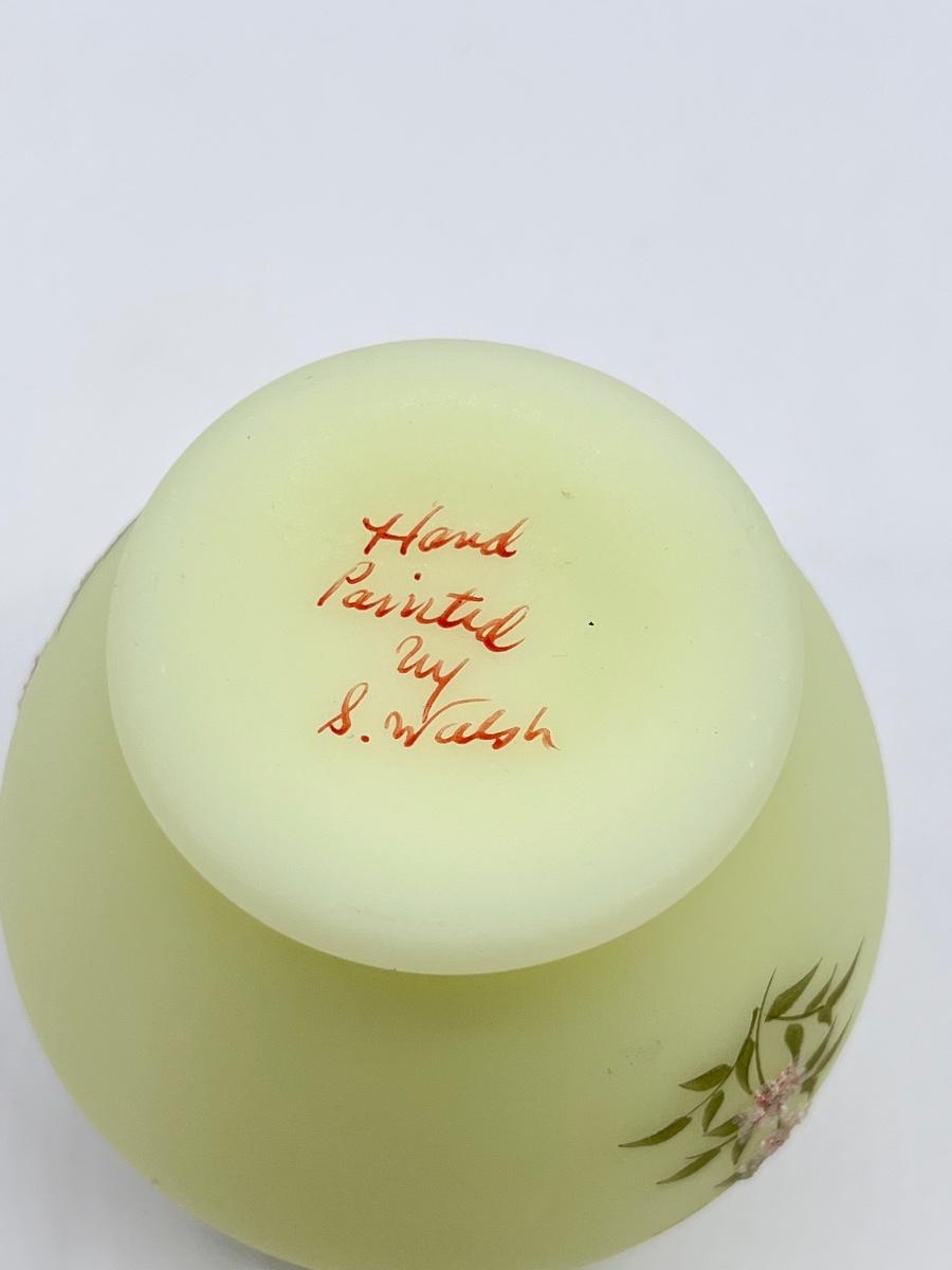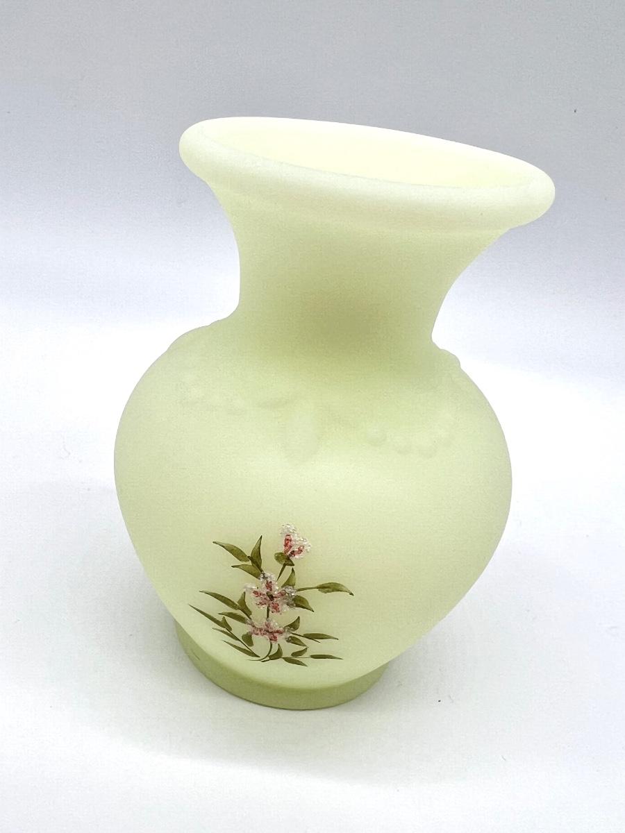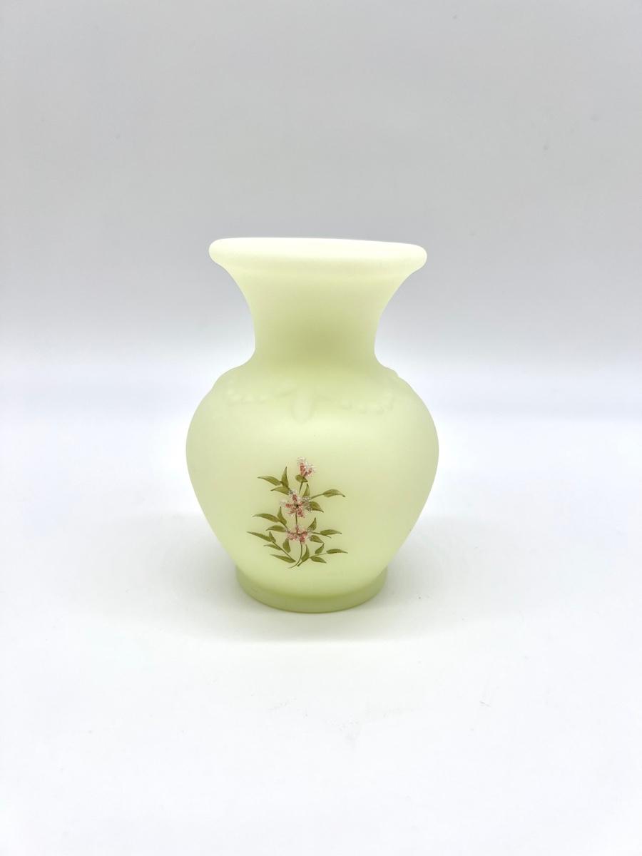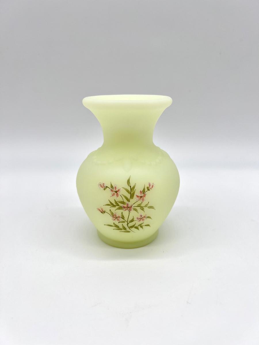 FENTON ~ Vaseline/Uranium Glass ~ Custard Satin Floral Vase