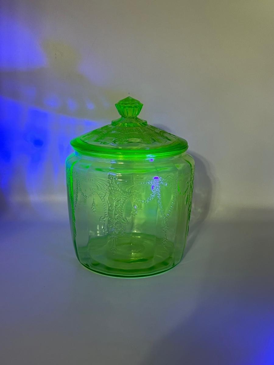 ANCHOR HOCKING ~ Uranium Glass Biscuit Jar ~