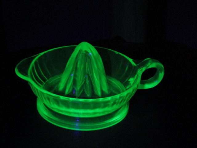 Uranium Glass Juicer. Has some chipping- see pictures.