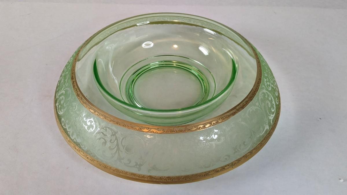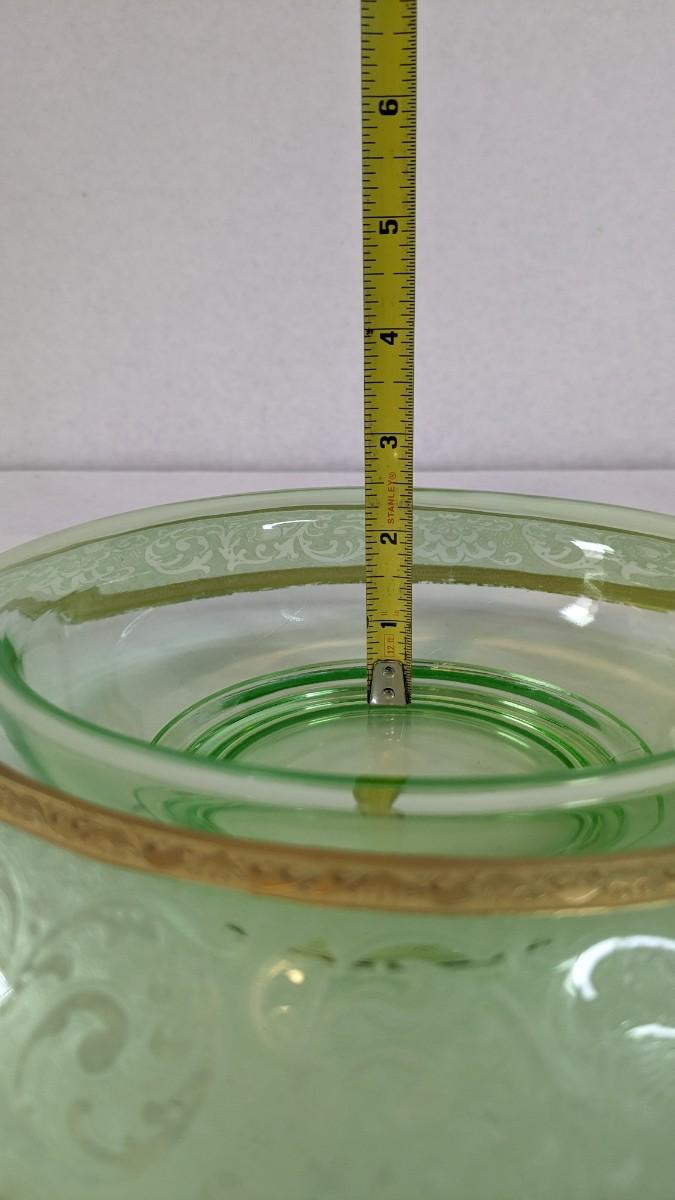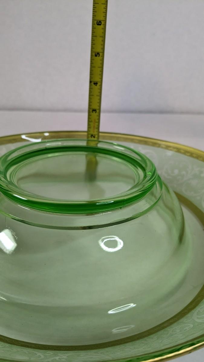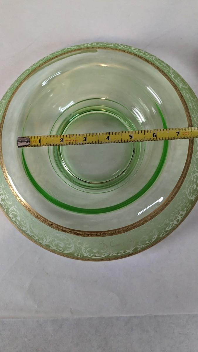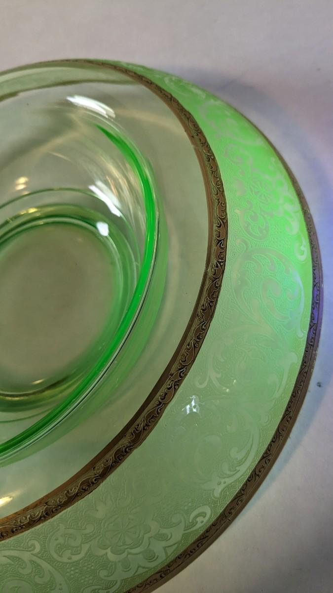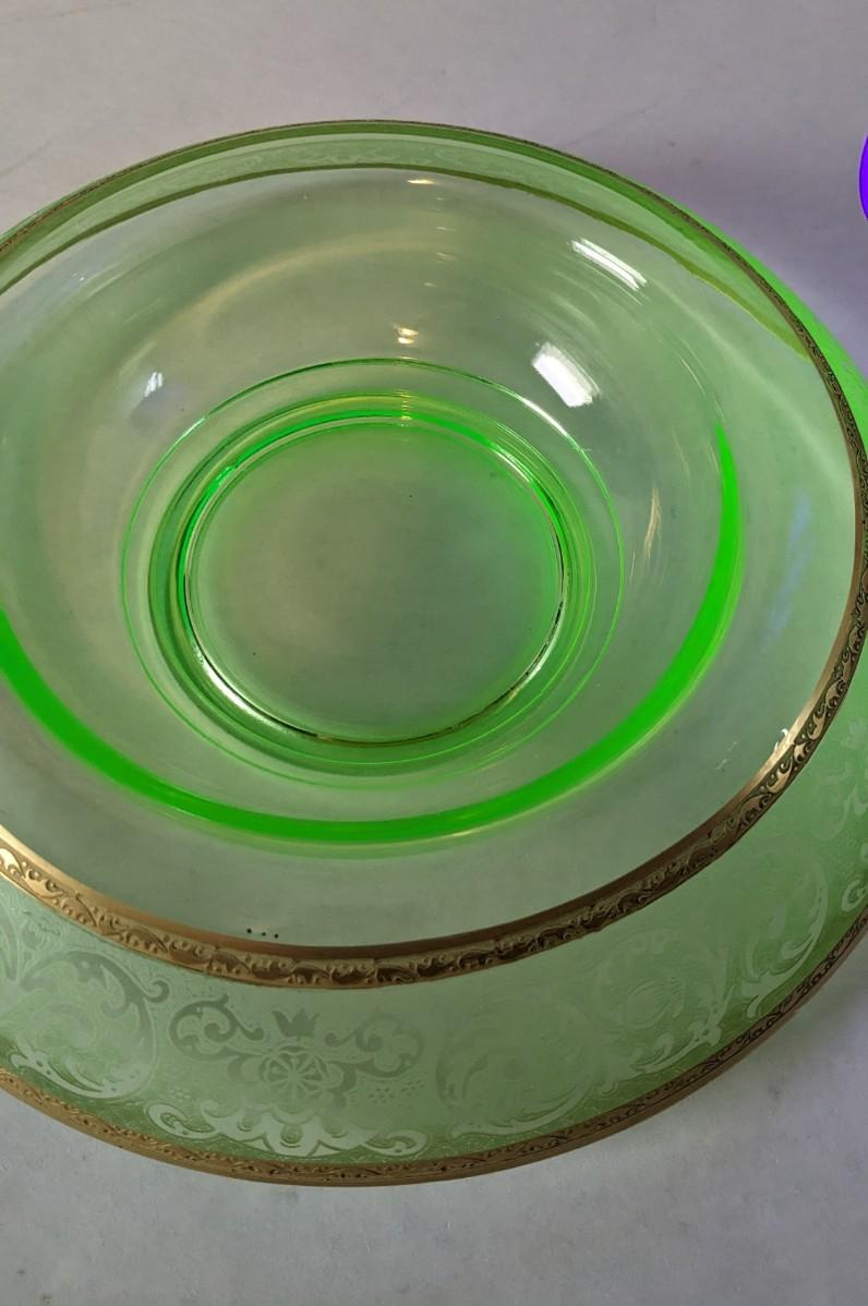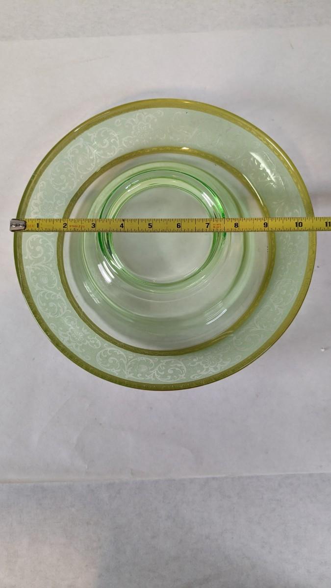 Uranium Glass Rolled Edge Floral Depression Glass Console