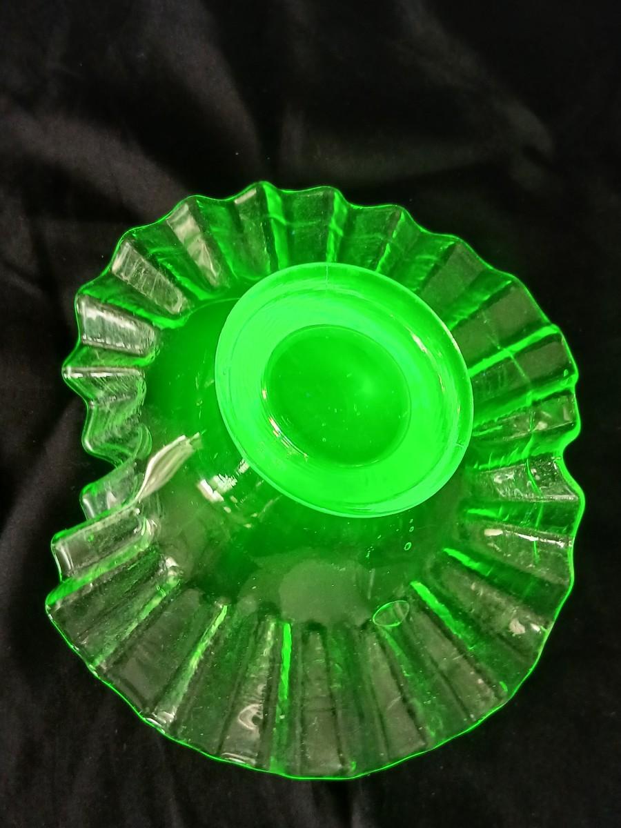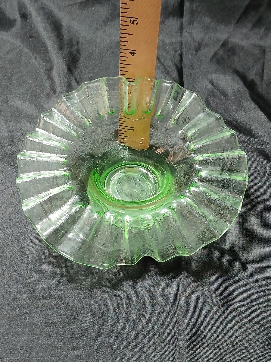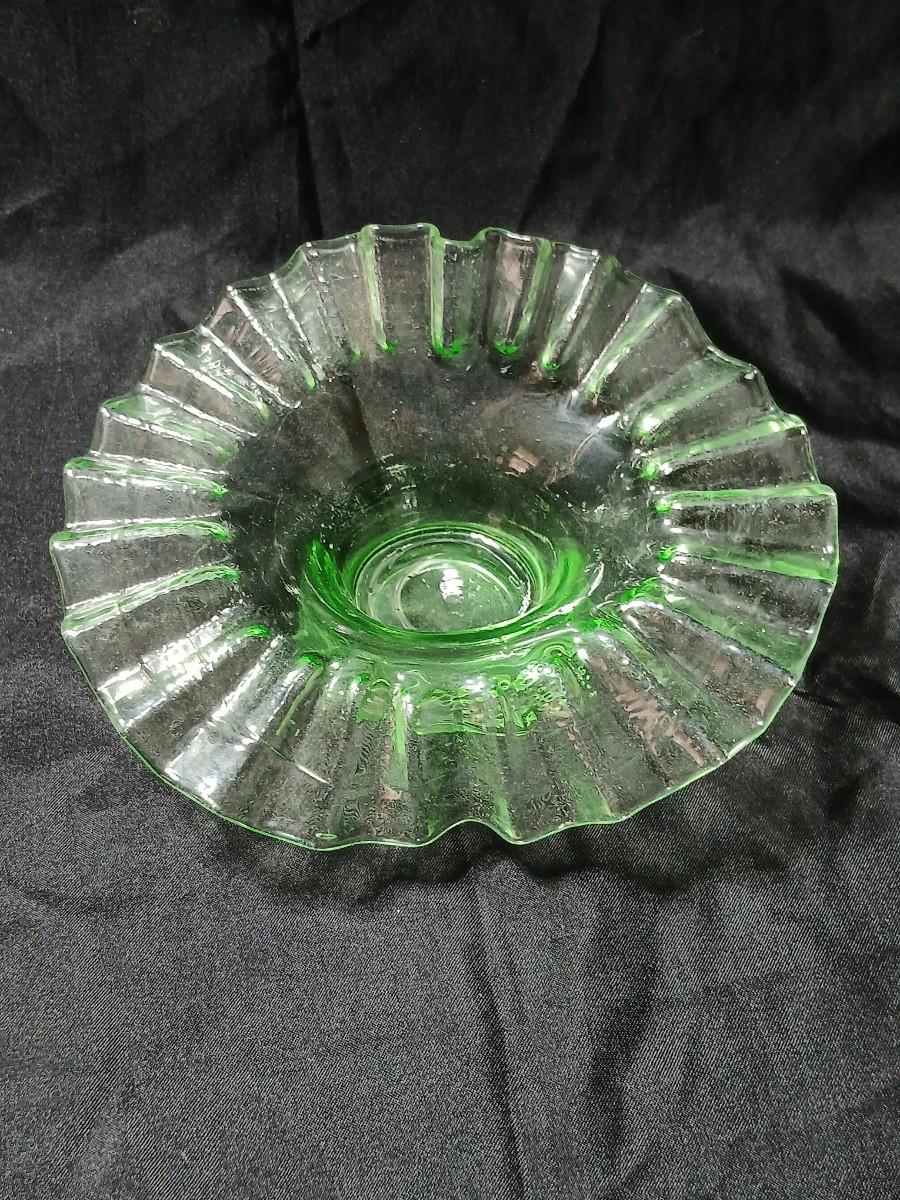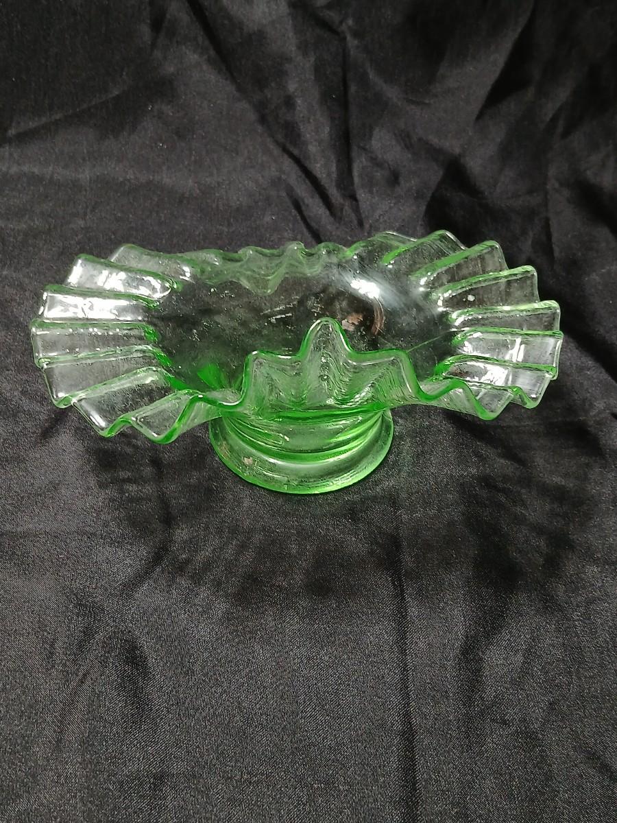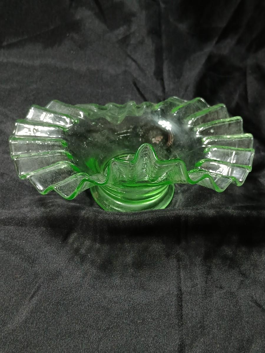 Uranium Green Vaseline Berry Bowl Pulpit Style Ruffled Edge Bowl