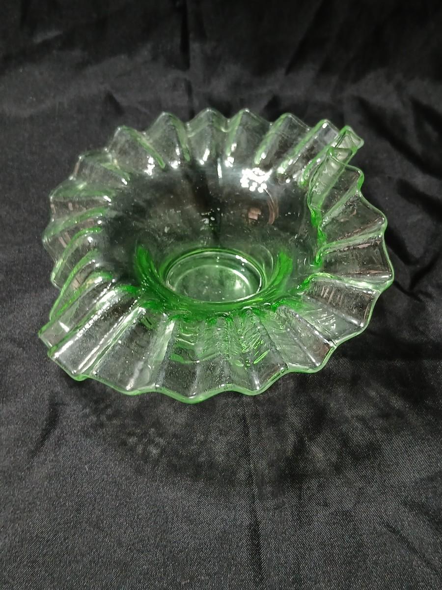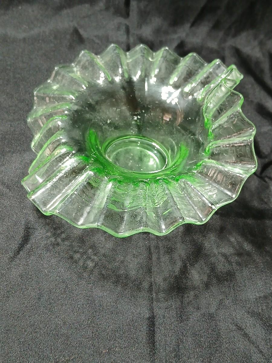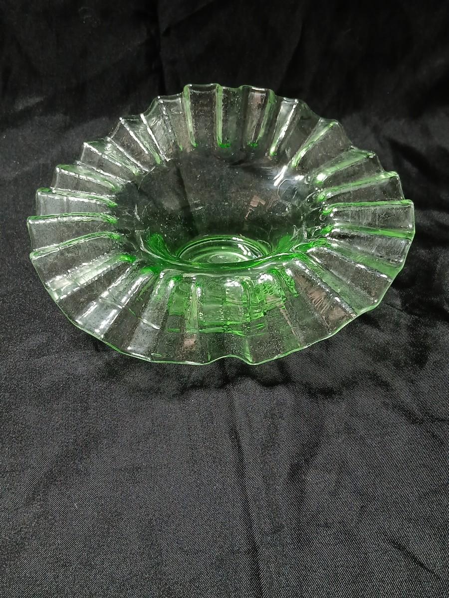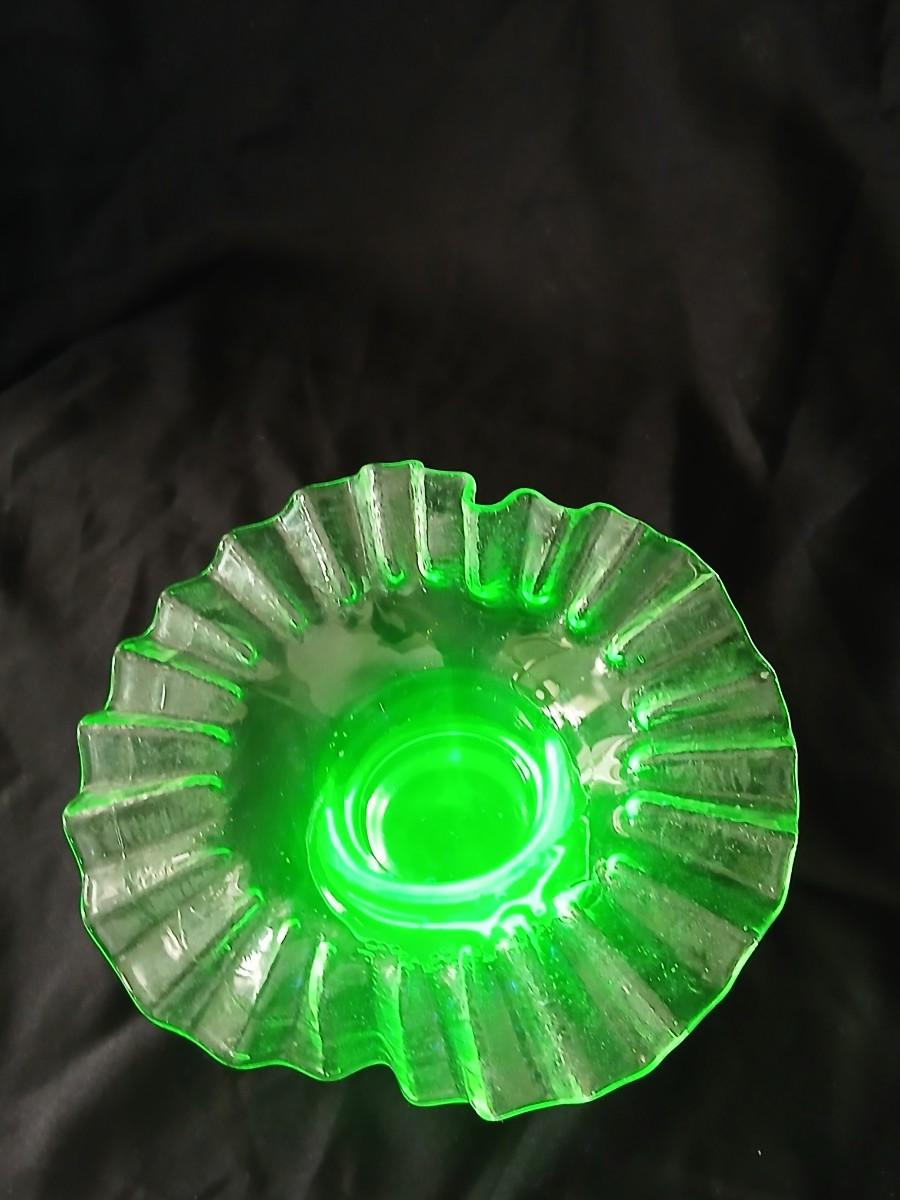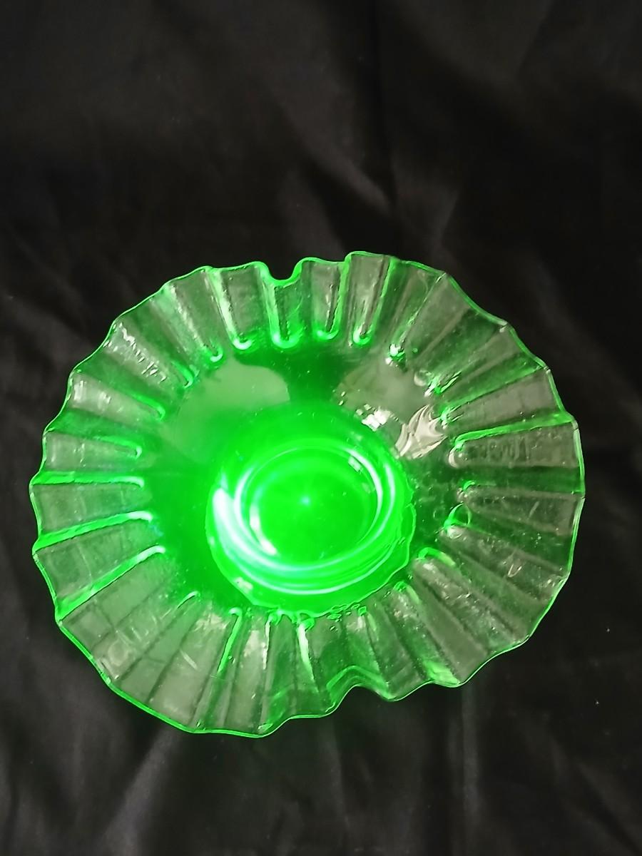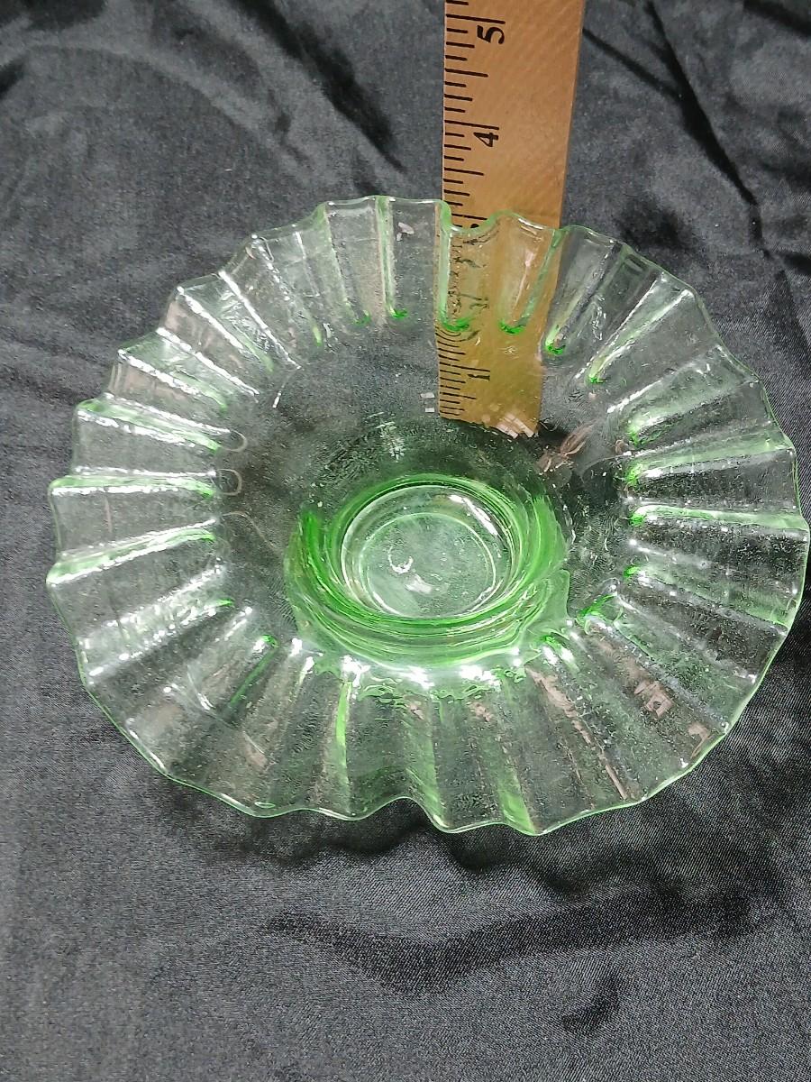 Uranium Green Vaseline Berry Bowl Pulpit Style Ruffled Edge Bowl