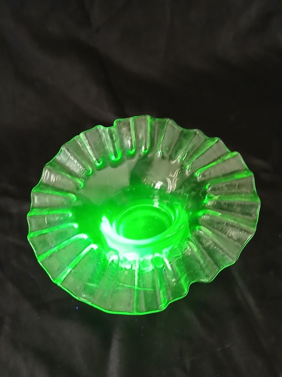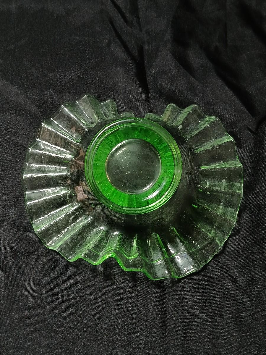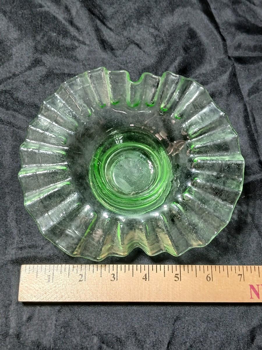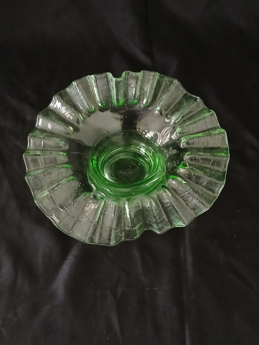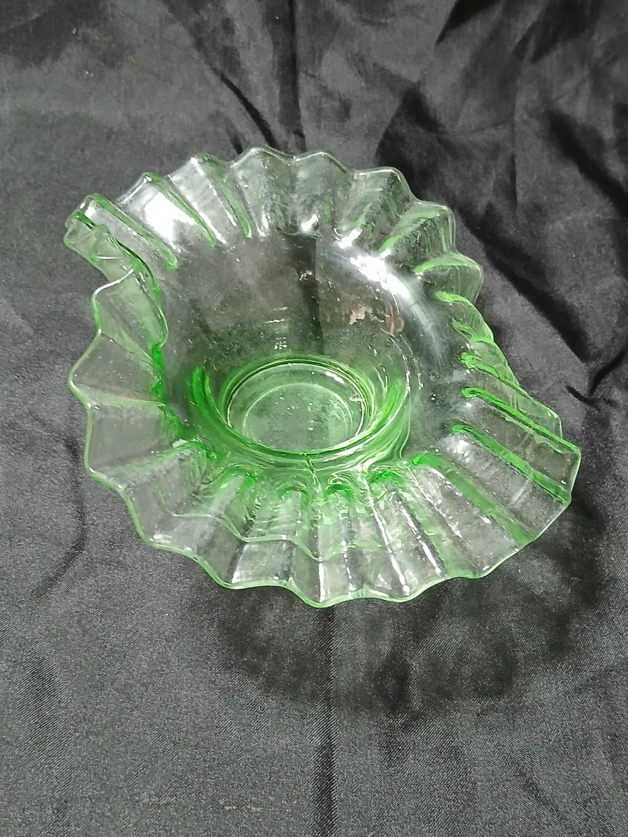 Uranium Green Vaseline Berry Bowl Pulpit Style Ruffled Edge Bowl