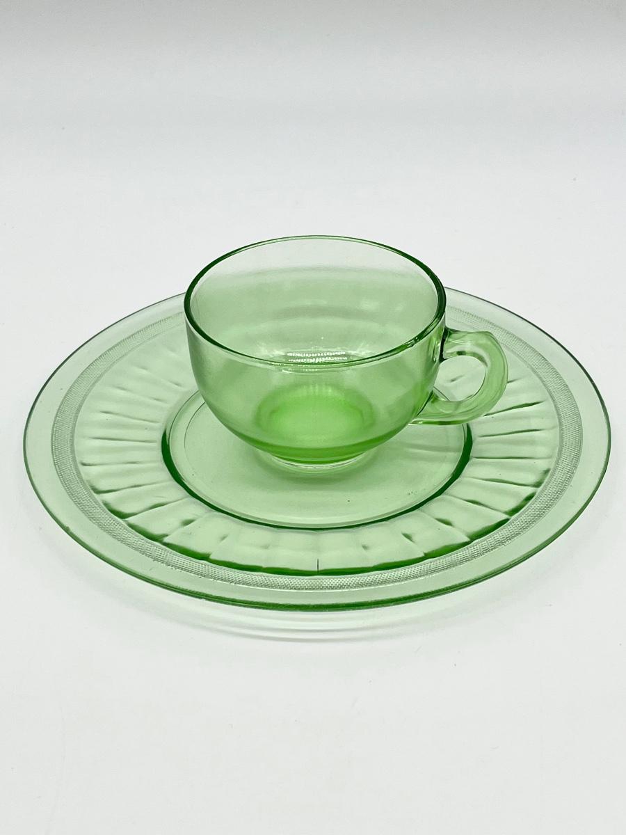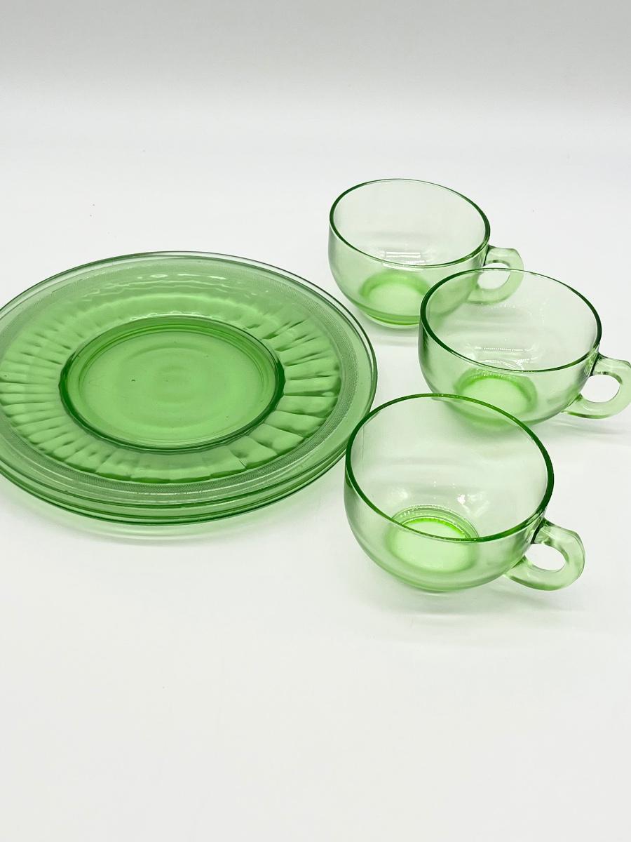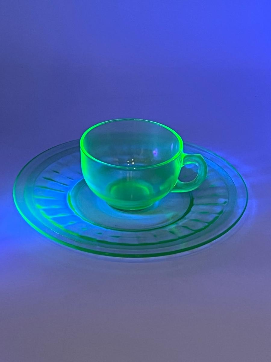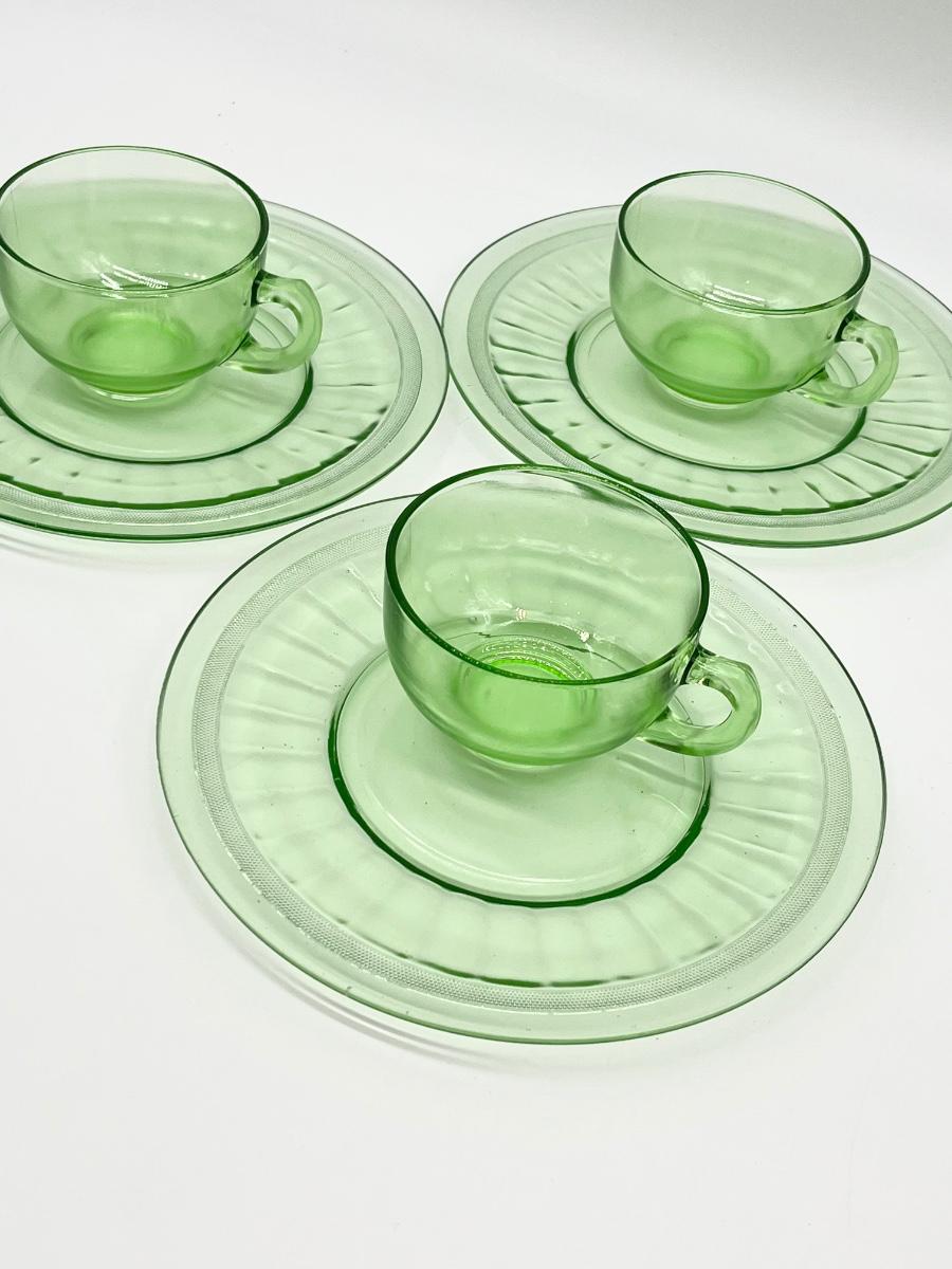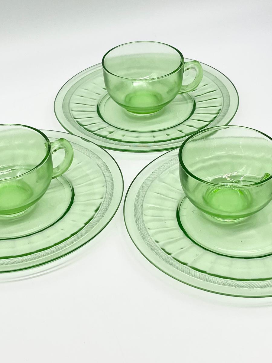 Set of Three (3) ~ Uranium Vaseline Glass Cup & Saucers