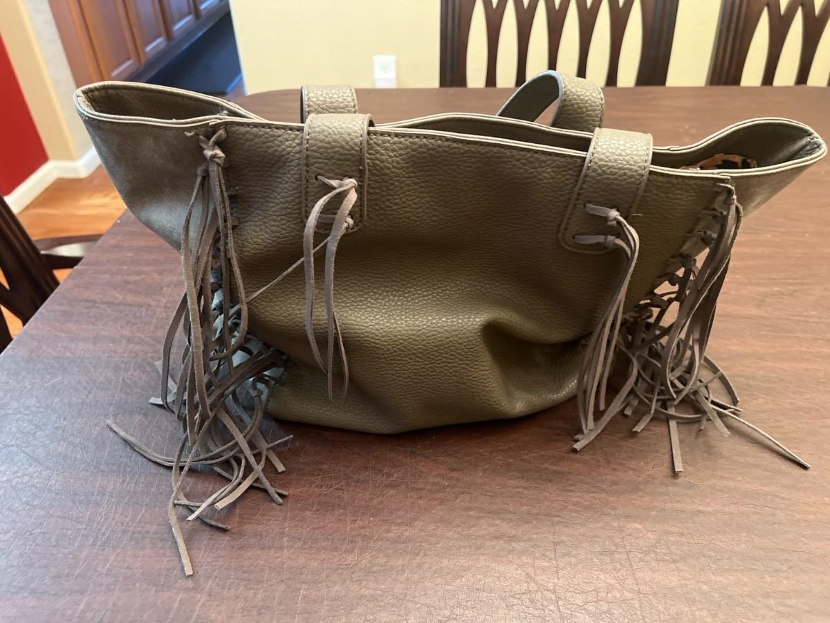Urban Originals Fringe Tote Handbag – Olive Green Faux Leather