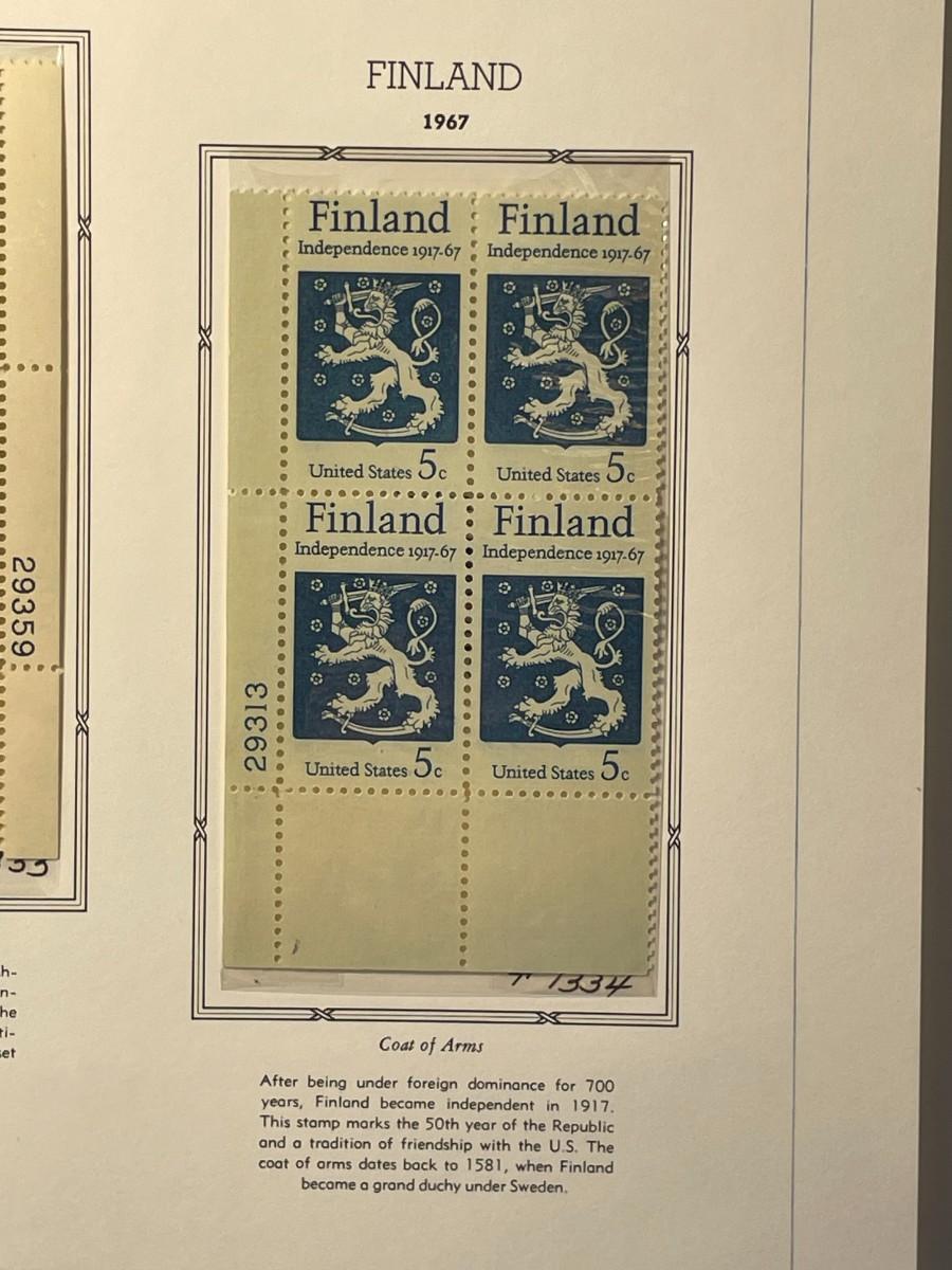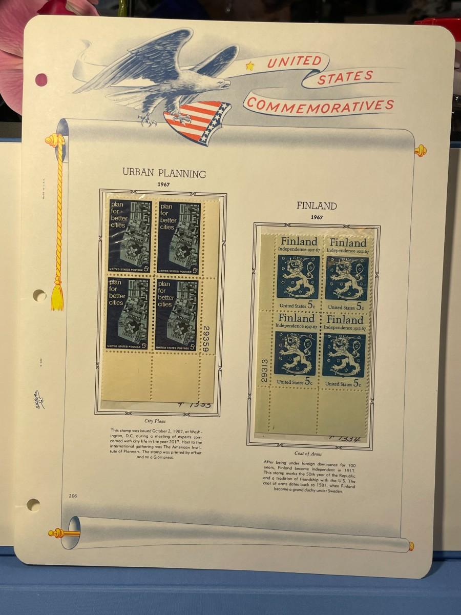 Urban Planning & Finland 1967 Mint Condition US Stamp Plate Blocks Page as Pictured. Only One $5 Shipping Charge for 1 or 100 Pages Won.