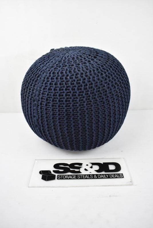 Urban Shop Round Knit Pouf, Navy. Warehouse Dirt