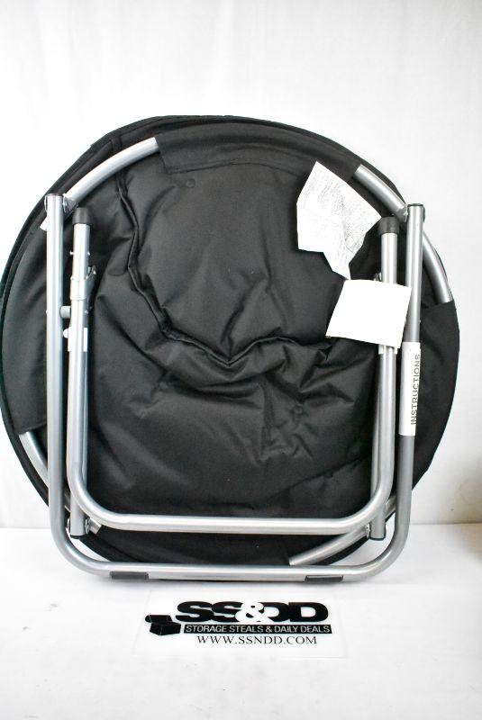 Urban Shop Velvet Channel Stitch Saucer Chair, Black. Scratches on legs, $42 Retail