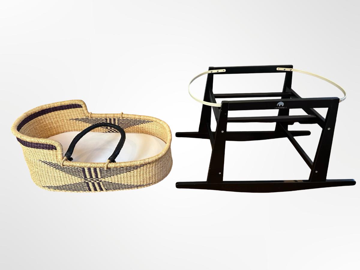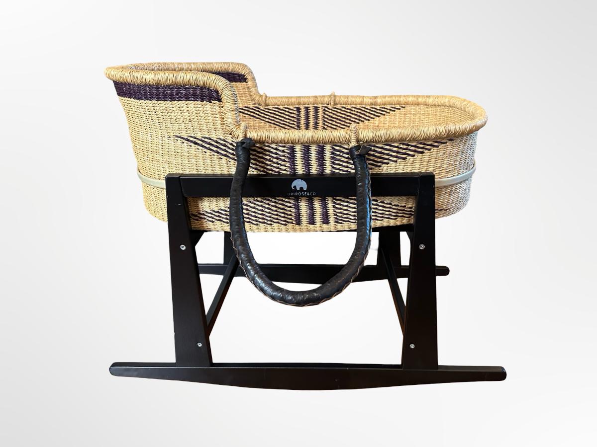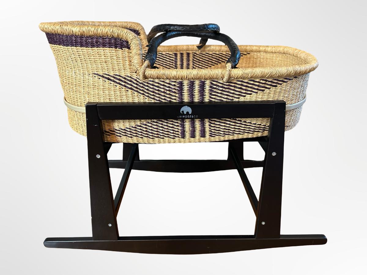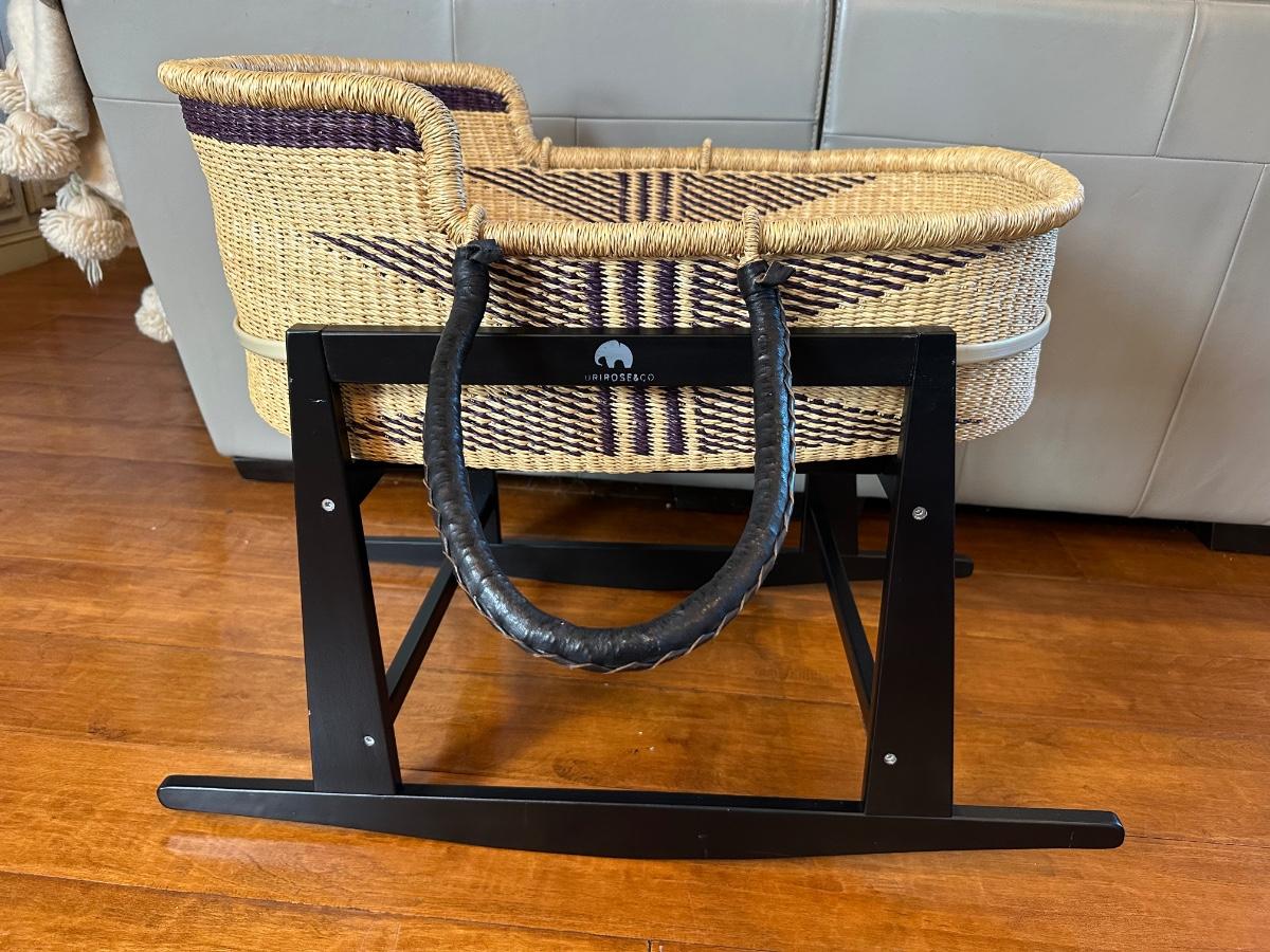 Uri Rose & Co. Handwoven Moses Basket with Black Wooden Rocking Stand