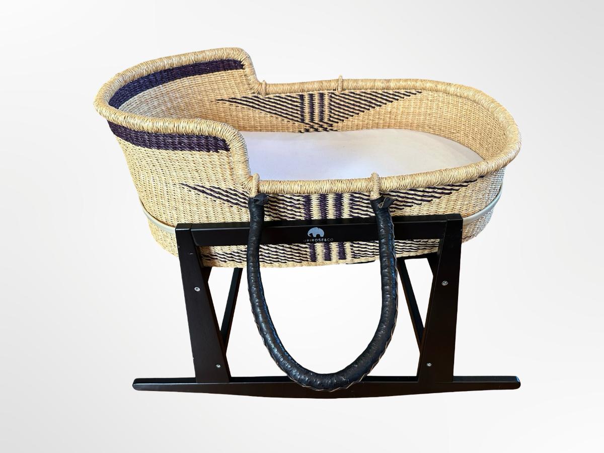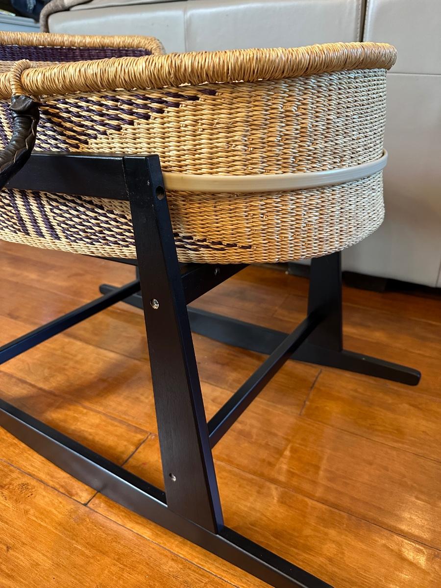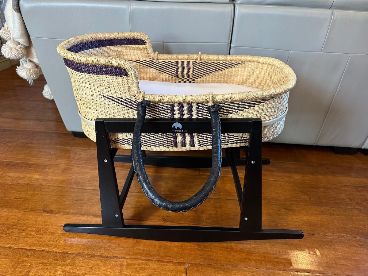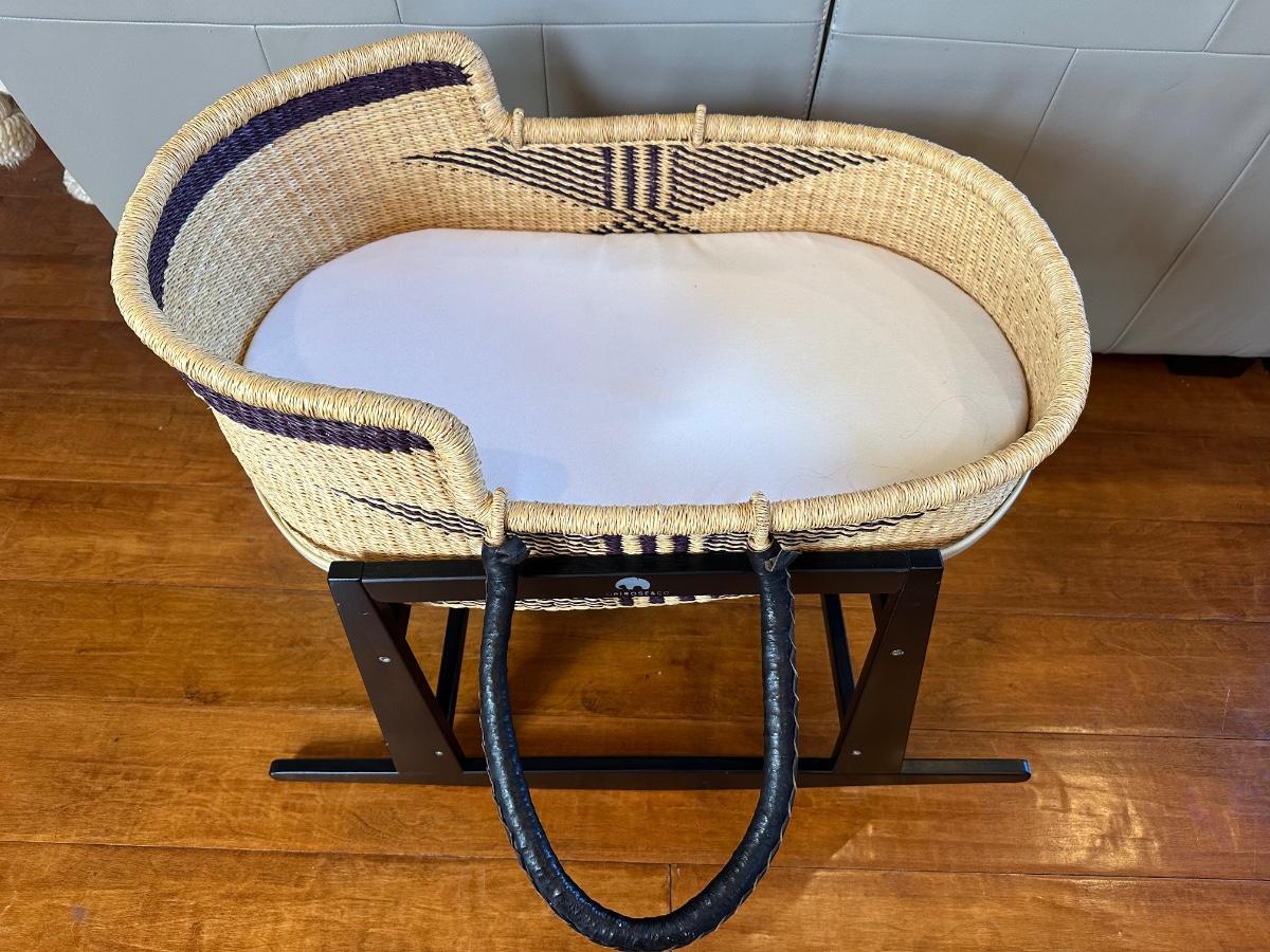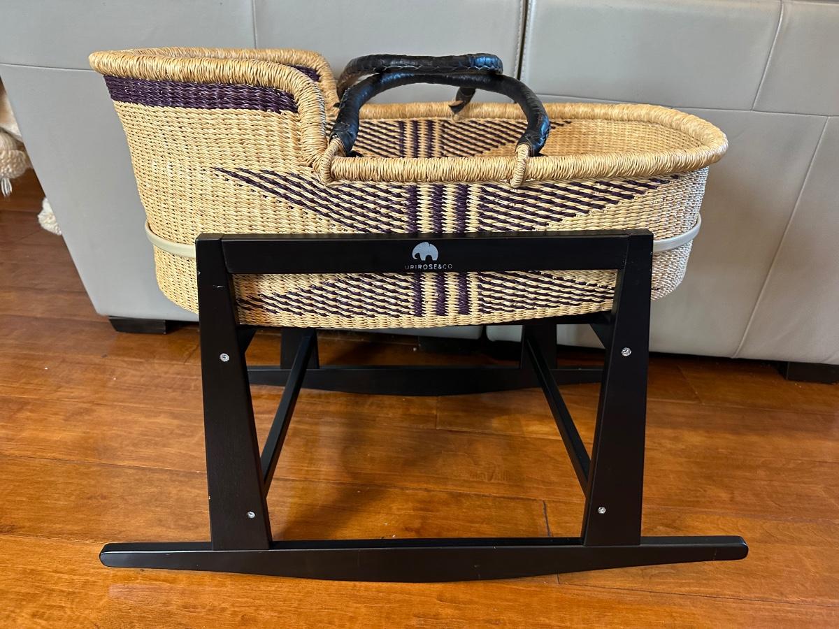 Uri Rose & Co. Handwoven Moses Basket with Black Wooden Rocking Stand