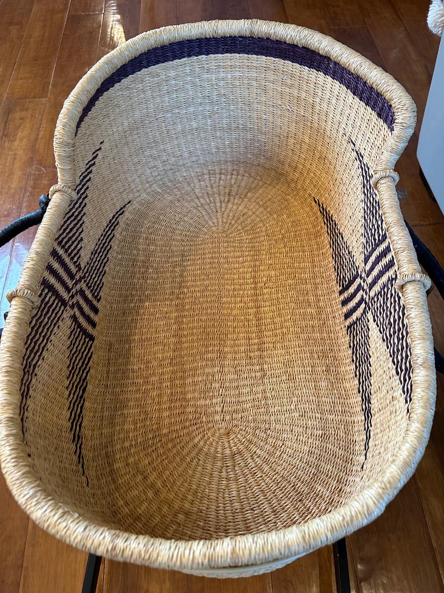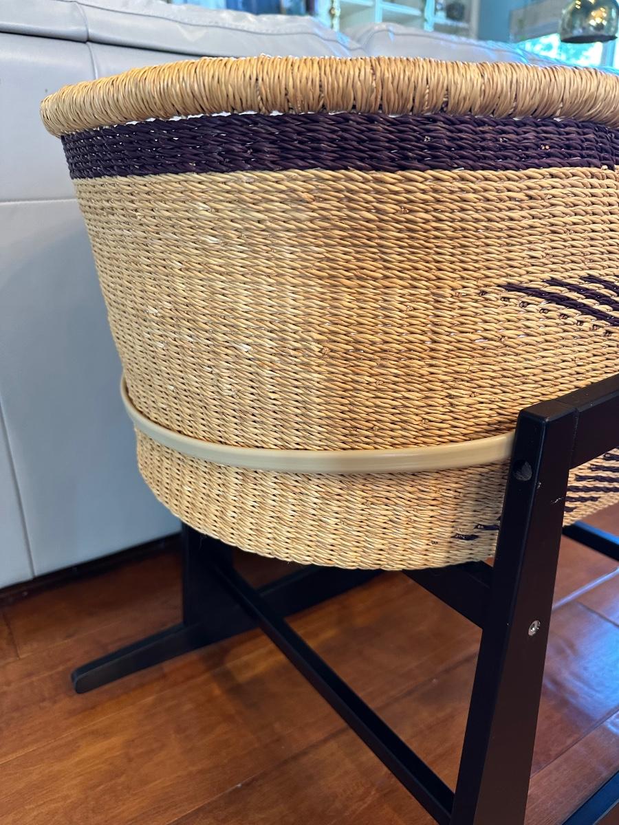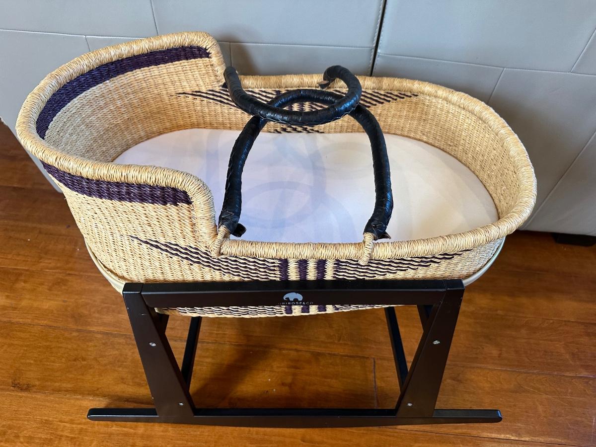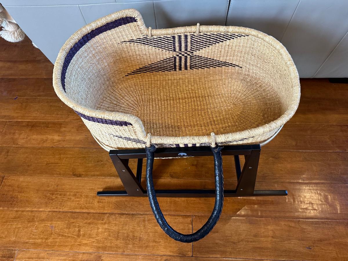 Uri Rose & Co. Handwoven Moses Basket with Black Wooden Rocking Stand
