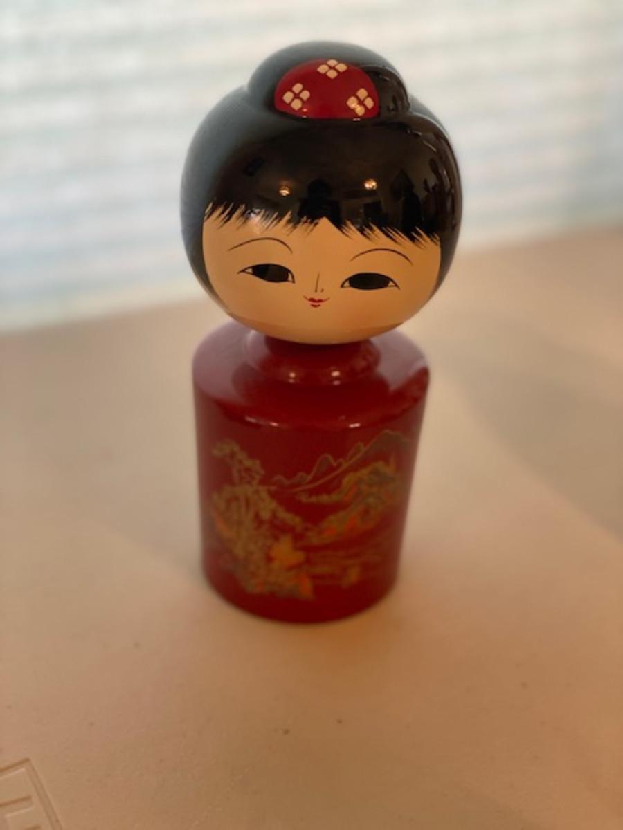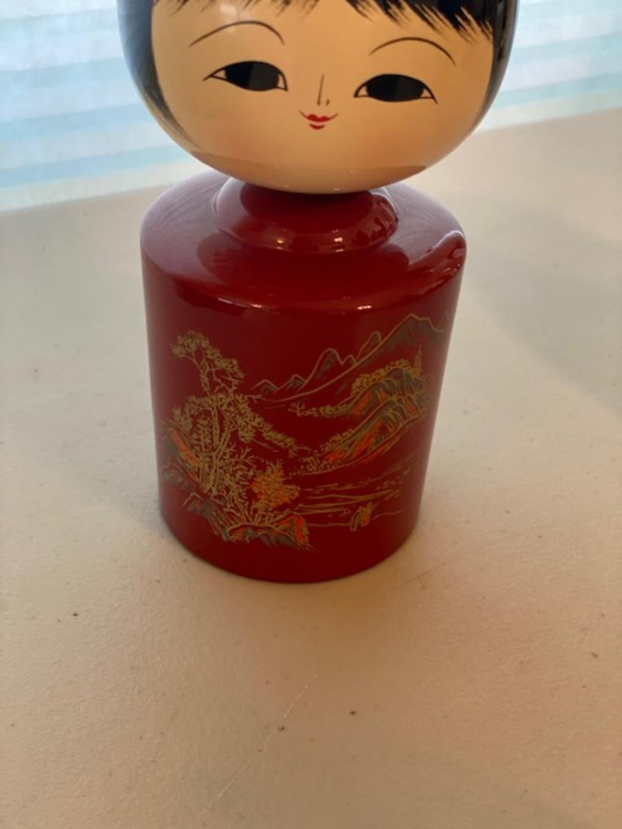 Urushi Lacquered Kokeshi Doll by Muneyama 7"
