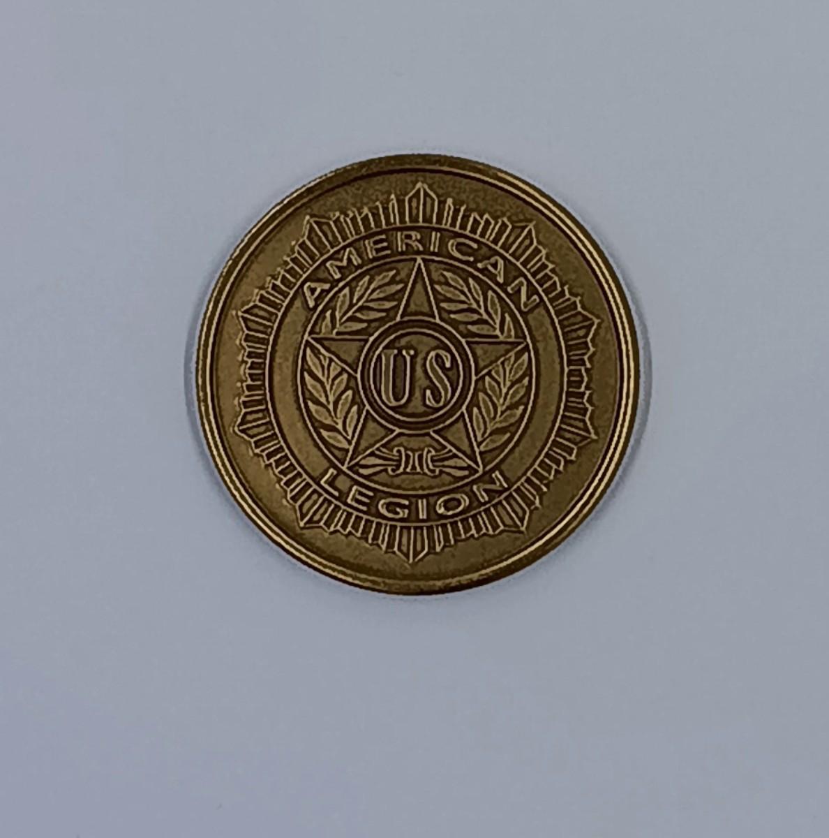 This commemorative U.S. American Legion coin features the American Legion logo on one side and and a depiction of the Vietnam Memorial Wall on the other.
