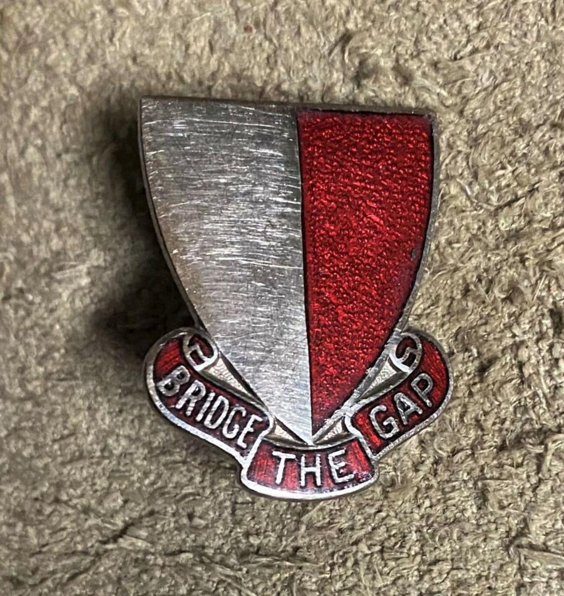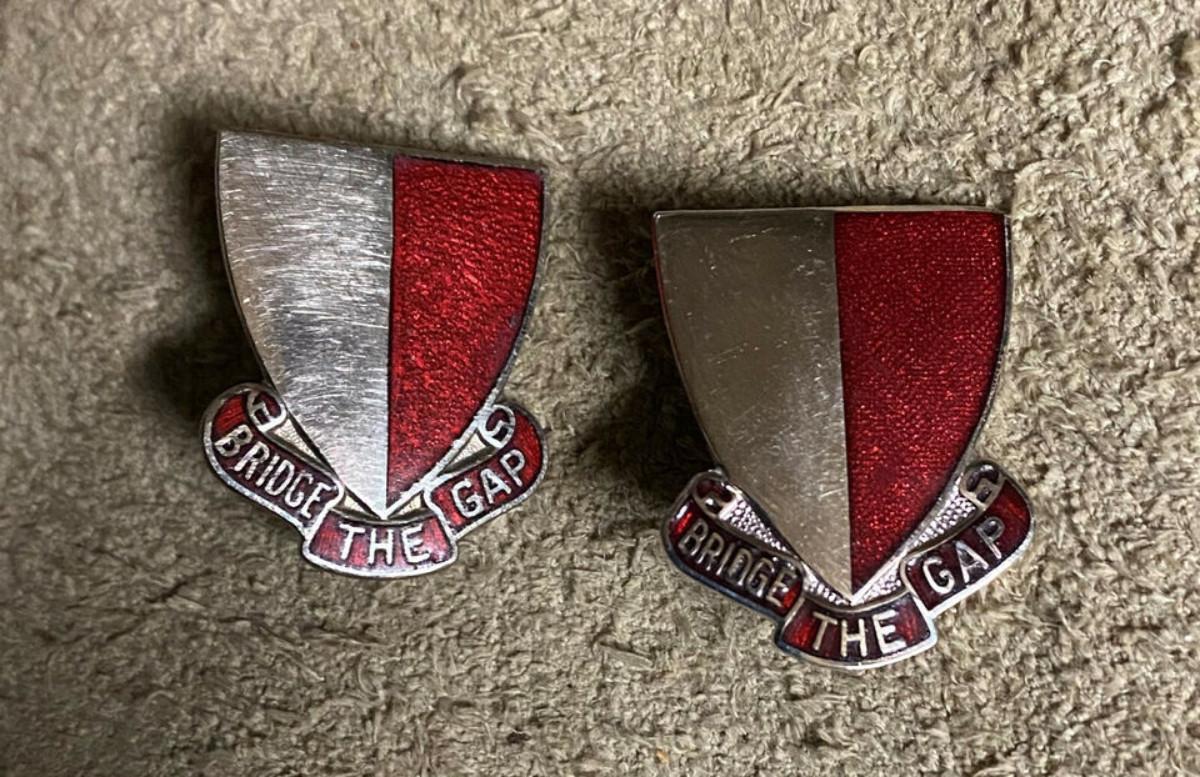 Distinctive Unit Crest pins for the U.S. Army 115th Engineer Battalion..."Bridge The Gap"...Good condition...Normal use...as shown...from the estate of a long-serving Officer who entered the service in the 1950's.