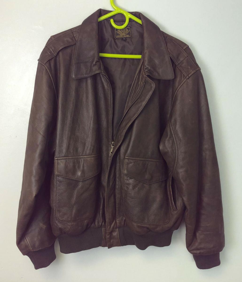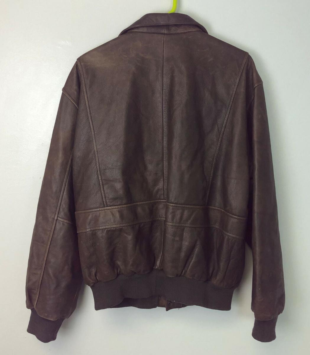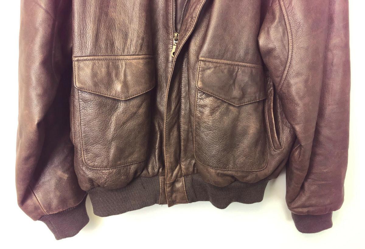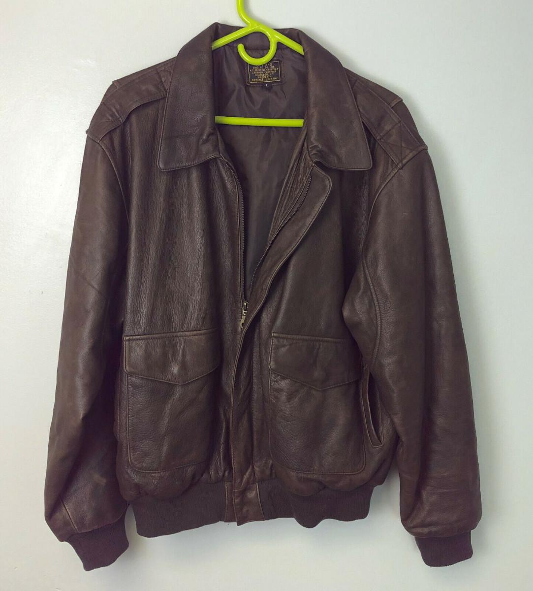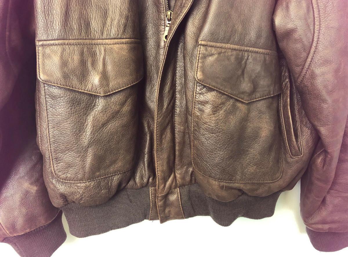Here is an exact copy of the classic Type A-2 leather flight jackets used by the U.S. Army Air Force in World War Two...Lightest use on this size 42...Shoulders 21"..Chest 21"..Sleeves 31"..Back 26"....Offered with no reserve