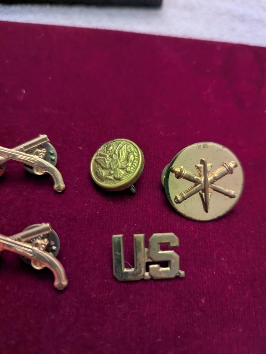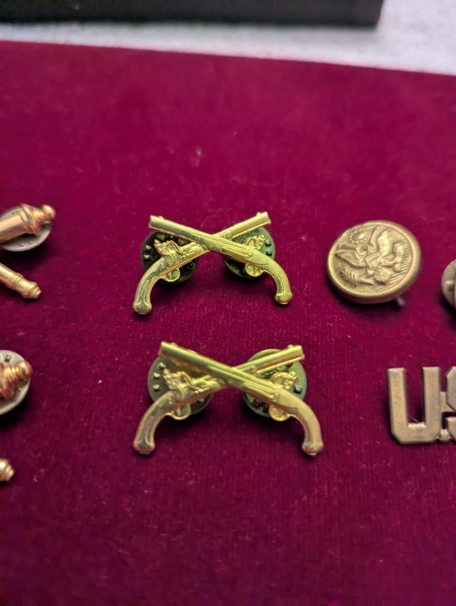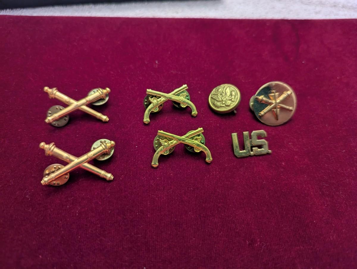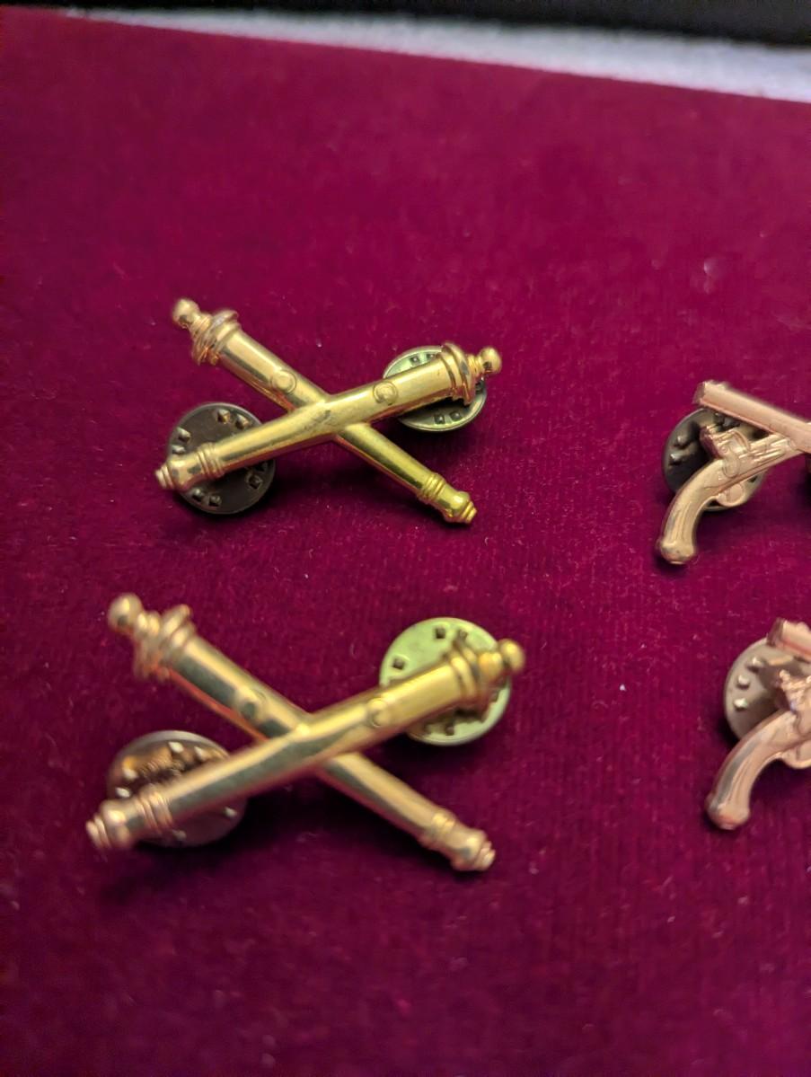 US Army Artillery Officer Collar Pin HIlborn Hamberger Set - Military Police Lapel Pin Set #23