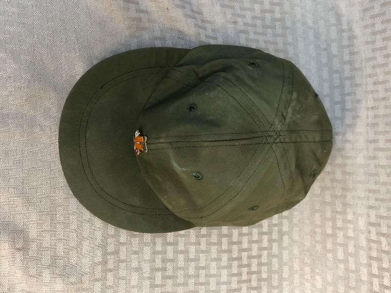 Vintage fatigue cap, baseball cap style. Includes unit insignia pin.