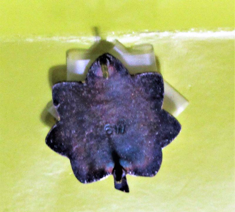 Has flat surface back and 2 pin posts with attachment caps. This silver oak leaf cap pin is stamped “˜6W’ on the back. It is a vintage WWII insignia pin. This is a wonderful pin for a number of those in military and/or police work. While sometimes written as "Lt. Colonel" in orders and signature blocks, as a courtesy, lieutenant colonels are addressed simply as "colonel" verbally and in the salutation of correspondence. The U.S. Army uses the three letter abbreviation "LTC," while the Marine Corps and U.S. Air Force use the abbreviations of "LtCol" and "Lt Col“. respectively.
