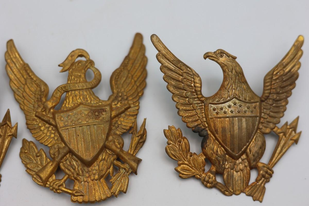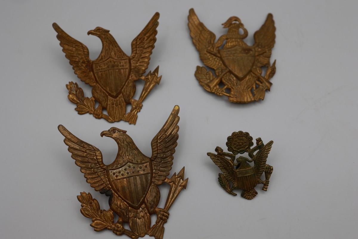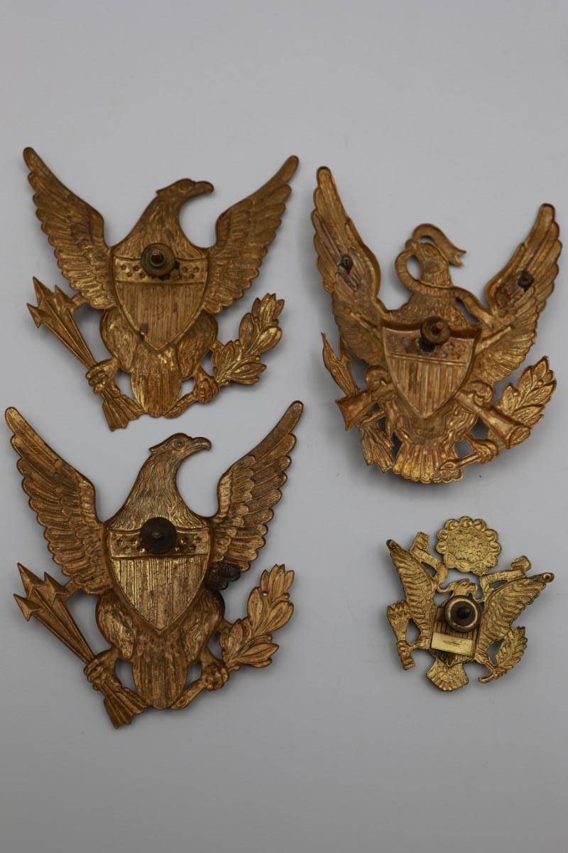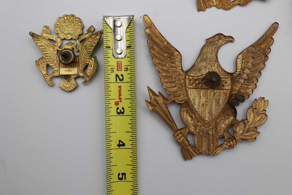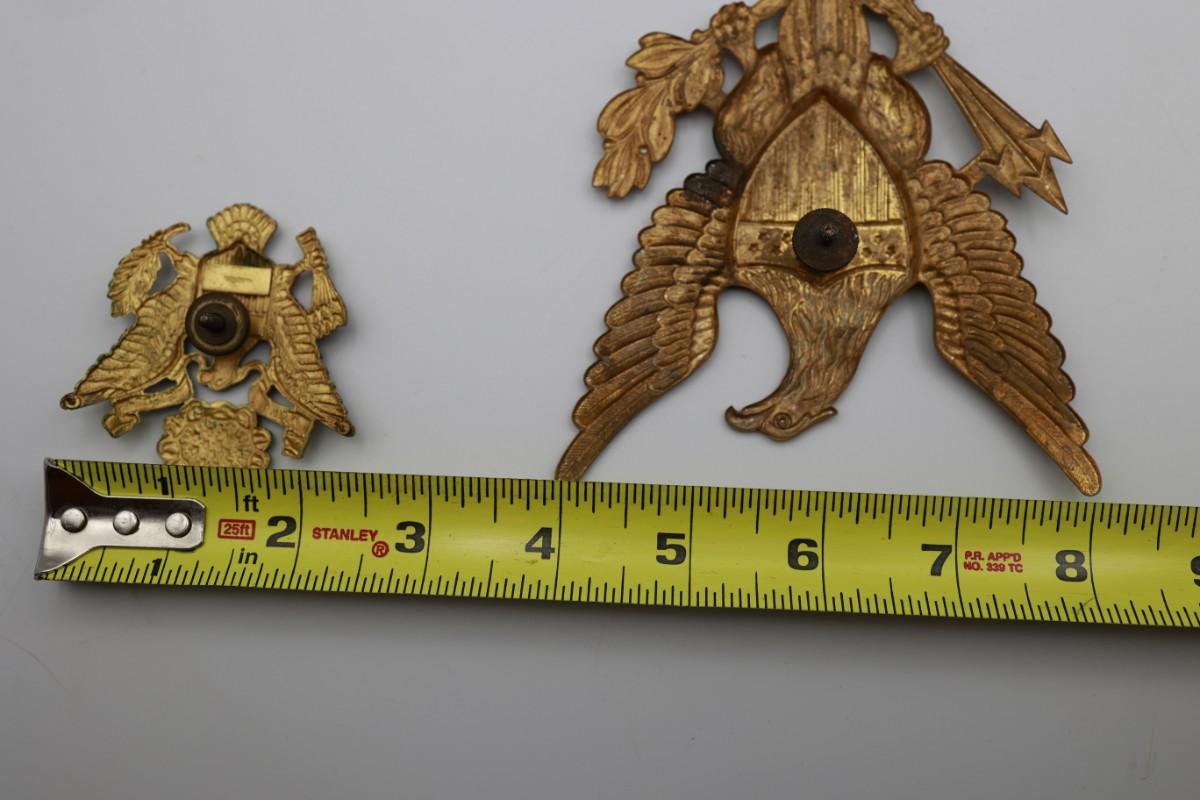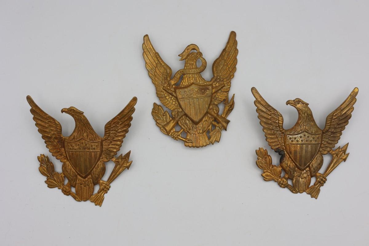 The smaller one is brass with gold plated finish. The larger ones are plates from the late 1800s.