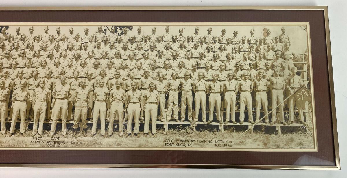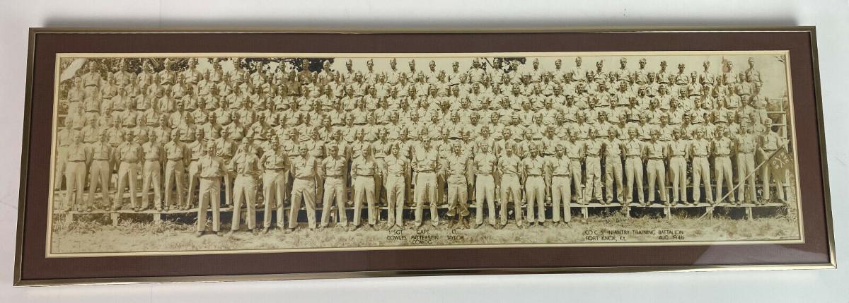 Matted and framed. In excellent condition here is a yard long unit photograph of Company C 5th Infantry Training Battalion..Fort Knox, Kentucky in August, 1946...WWII era...Frame 30.25" x 9.5"...Image 28" x 7.5"...Offered with no reserve...