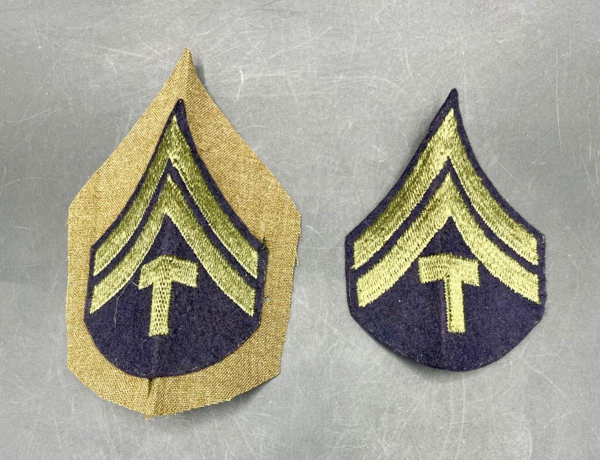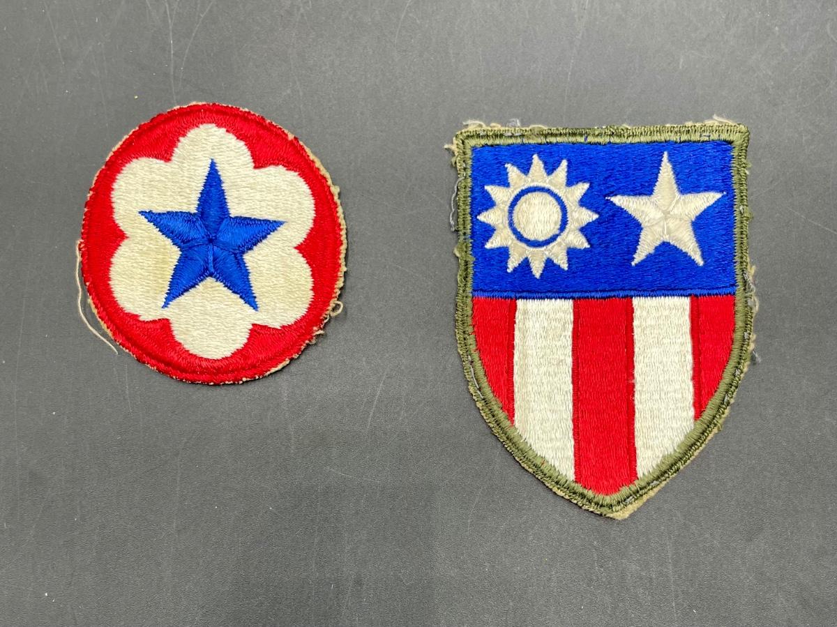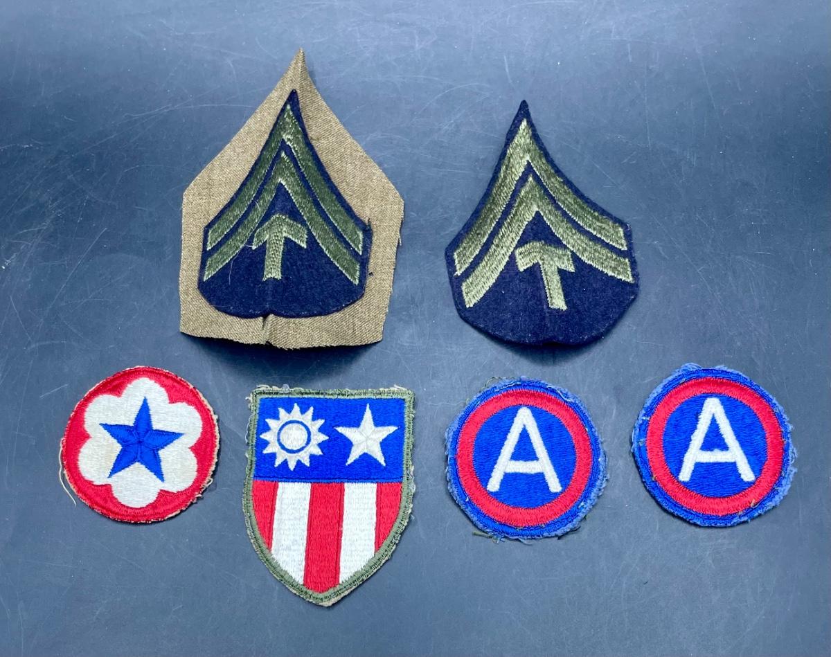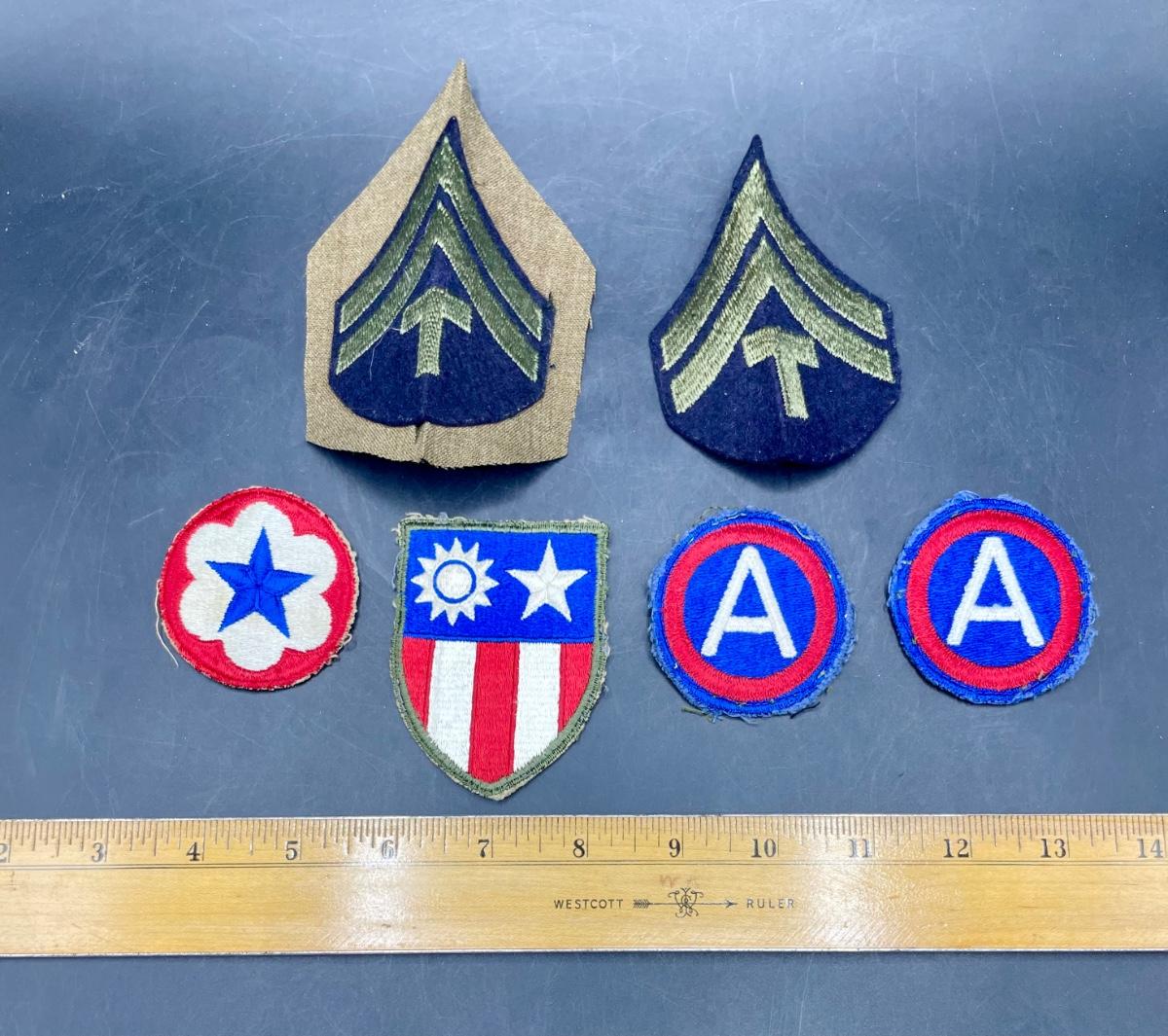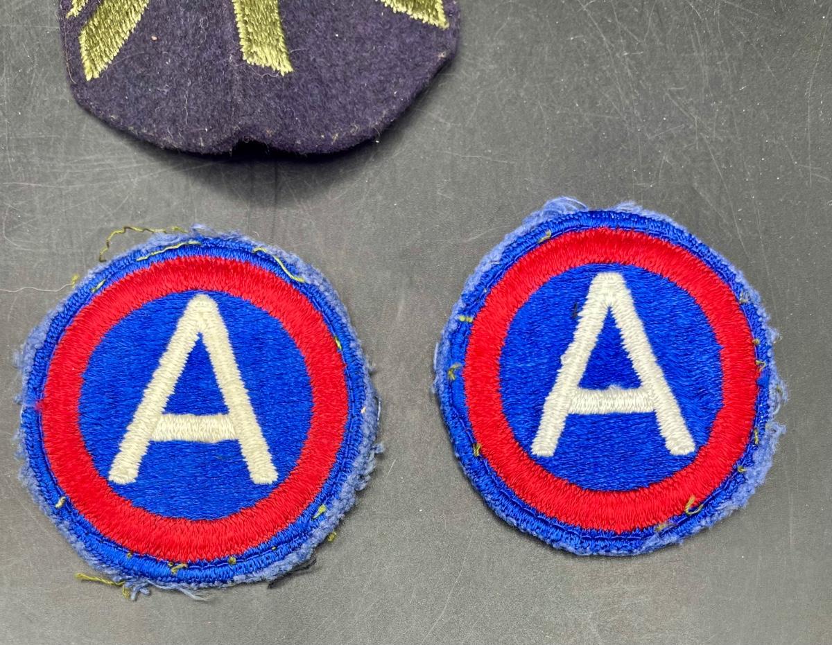 Includes 2 US 3rd Army shoulder patches, a US Army CBI China Burma India Theater patch, a US Army Services of Supply patch, and a pair of US Army Tech 5 Shoulder patches.