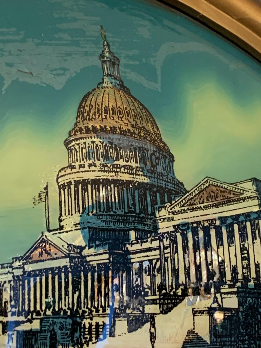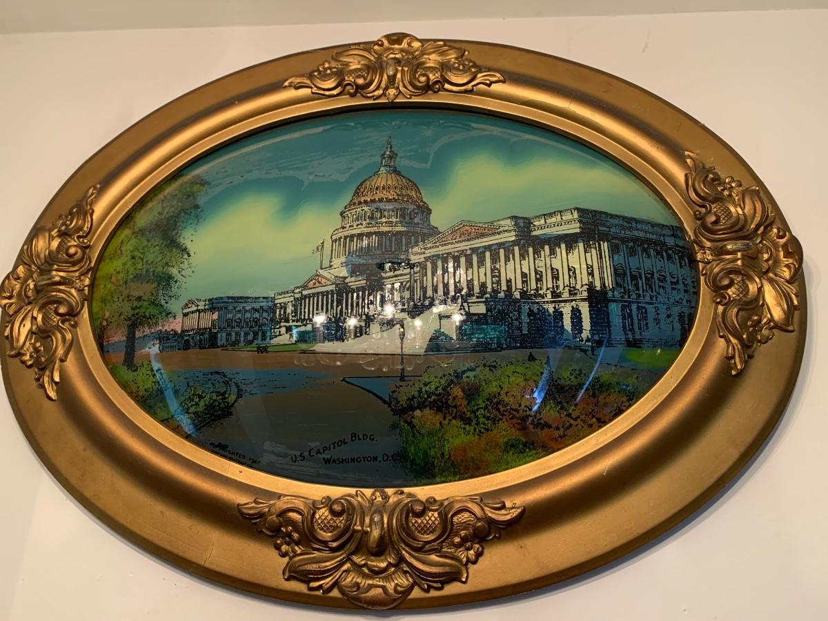 US Capitol Vintage Reverse On Glass Hand Painted Framed