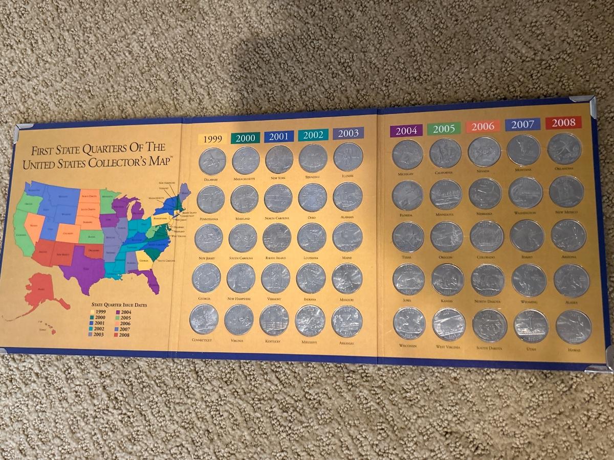 1999-2008 First State Quarters of the United States Collectors Map book w/ small pamphlet.
