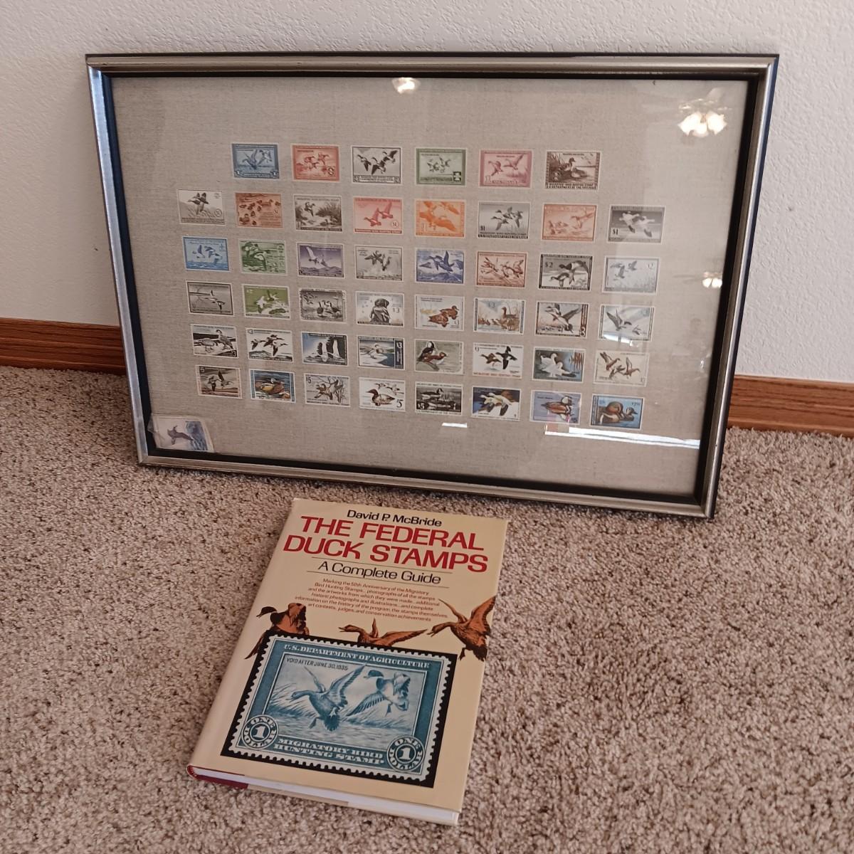 US DEPARTMENT OF THE INTERIOR DUCK STAMPS AND AN INSCRIBED BOOK BY THE AUTHOR