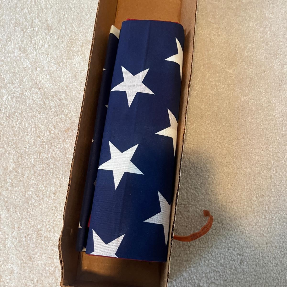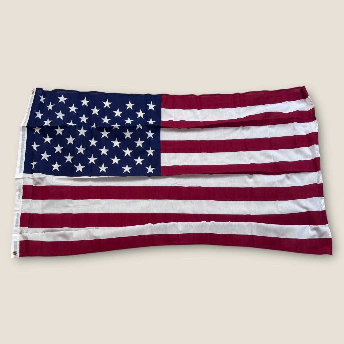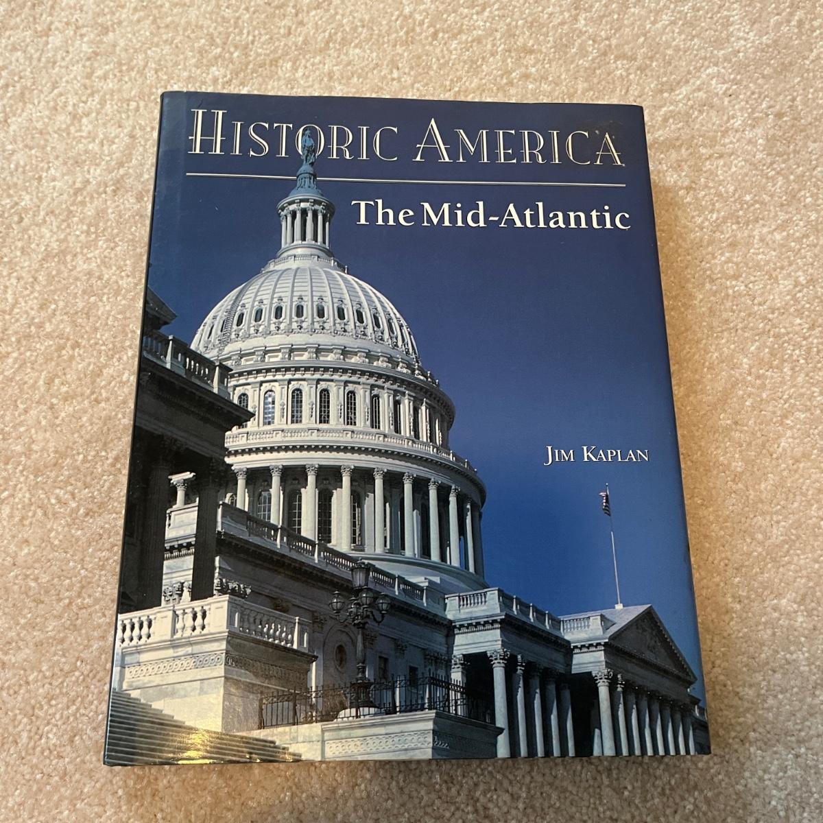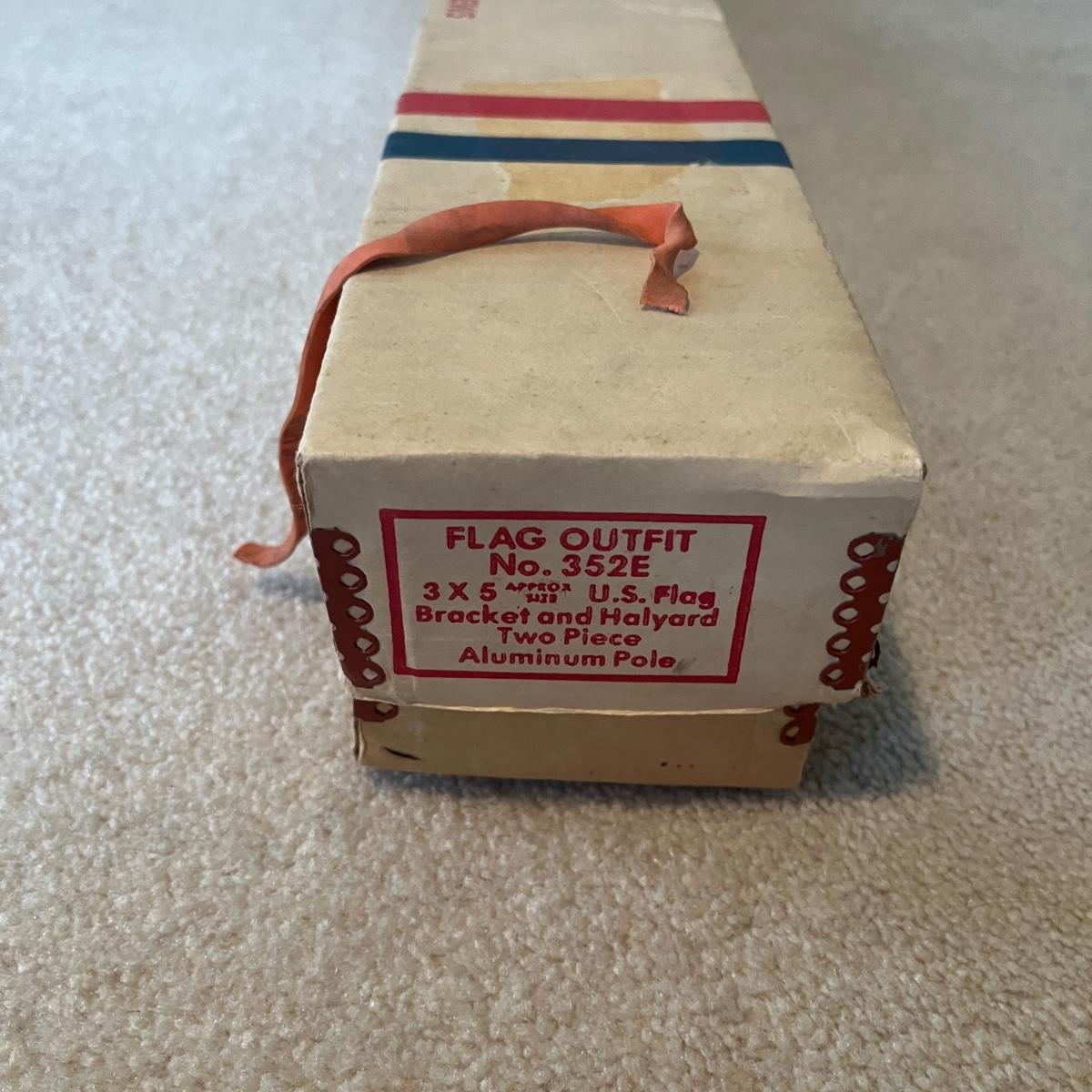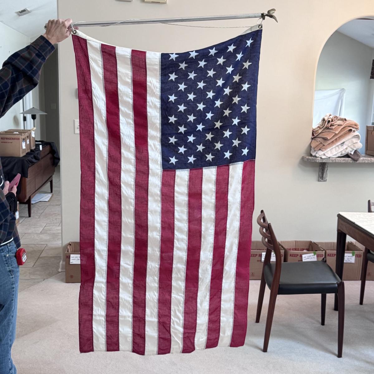Lot includes two US flags with two-piece, six foot metal pole and five books on America and more.